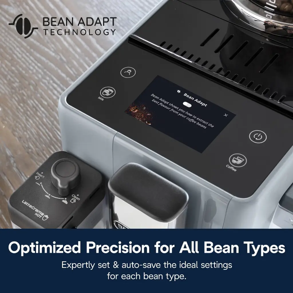 Delonghi Rivelia Automatic Coffee And Espresso Machine With Milk Frother & Bean Switch System 18 One-touch Recipes, 4 User Profiles Pebble Gray