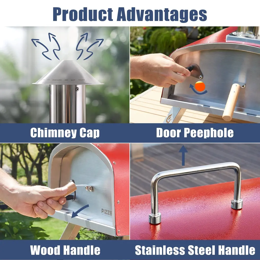 Dual-Fuel Outdoor Pizza Oven Portable Pizza Oven With Gas Burner & Wood Box - 16 Inch - Red