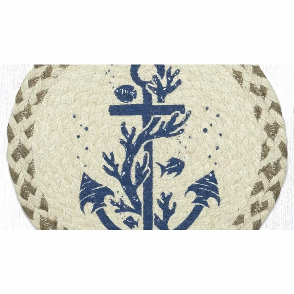Earth Rugs Anchor Printed Round Jute Trivet – 10" Nautical Coastal Design, Heat-resistant Table Protector