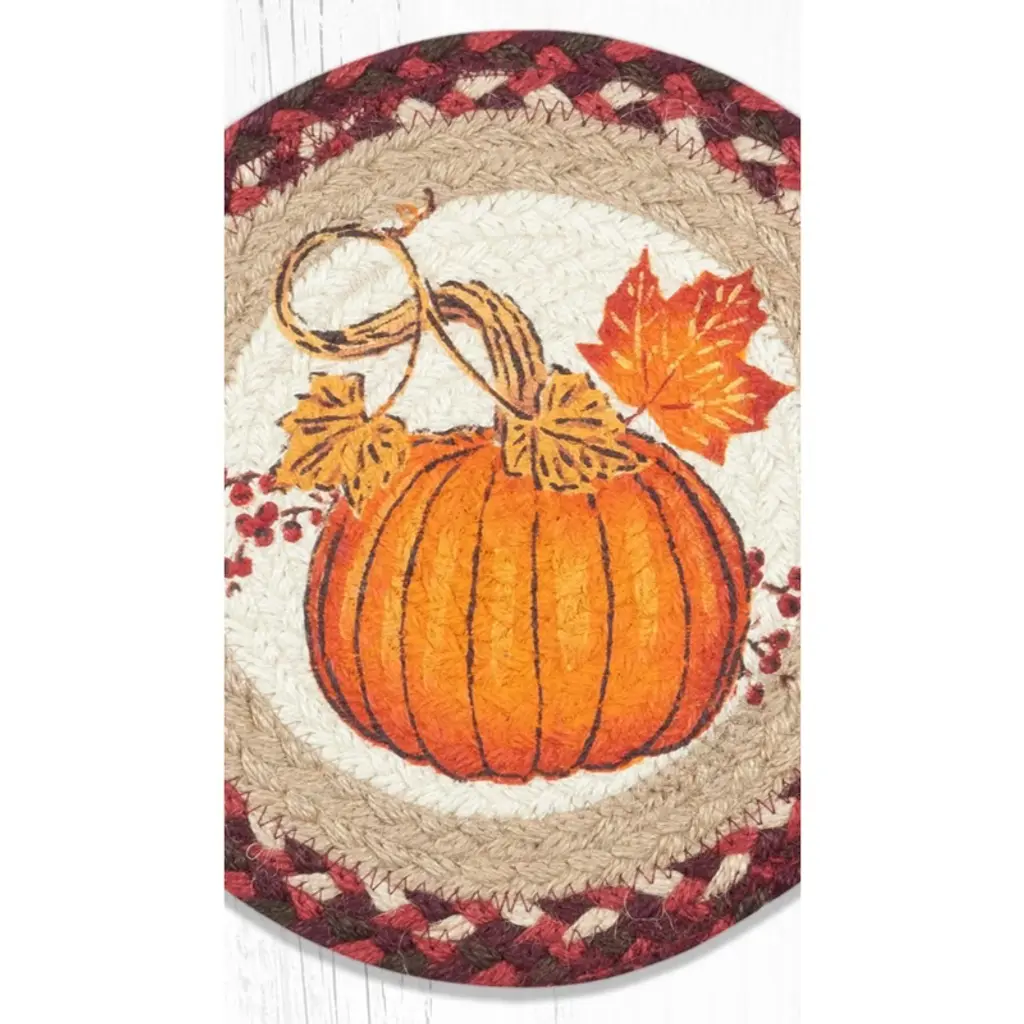 Earth Rugs Autumn Pumpkin Printed Round Trivet 10"x10" – Rustic Fall Kitchen Hot Pad