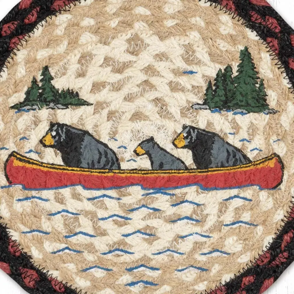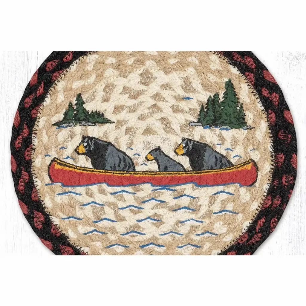 Earth Rugs Bears In Canoe Round Trivet – 10" Wildlife Print On Braided Natural Jute Table Mat