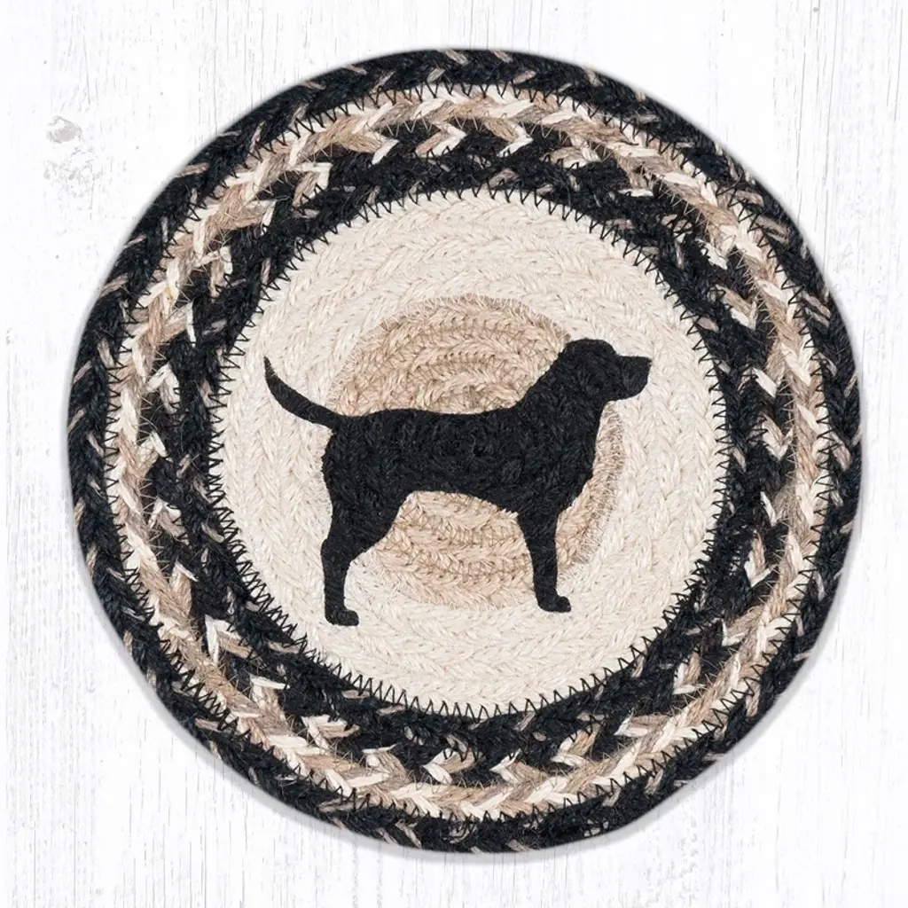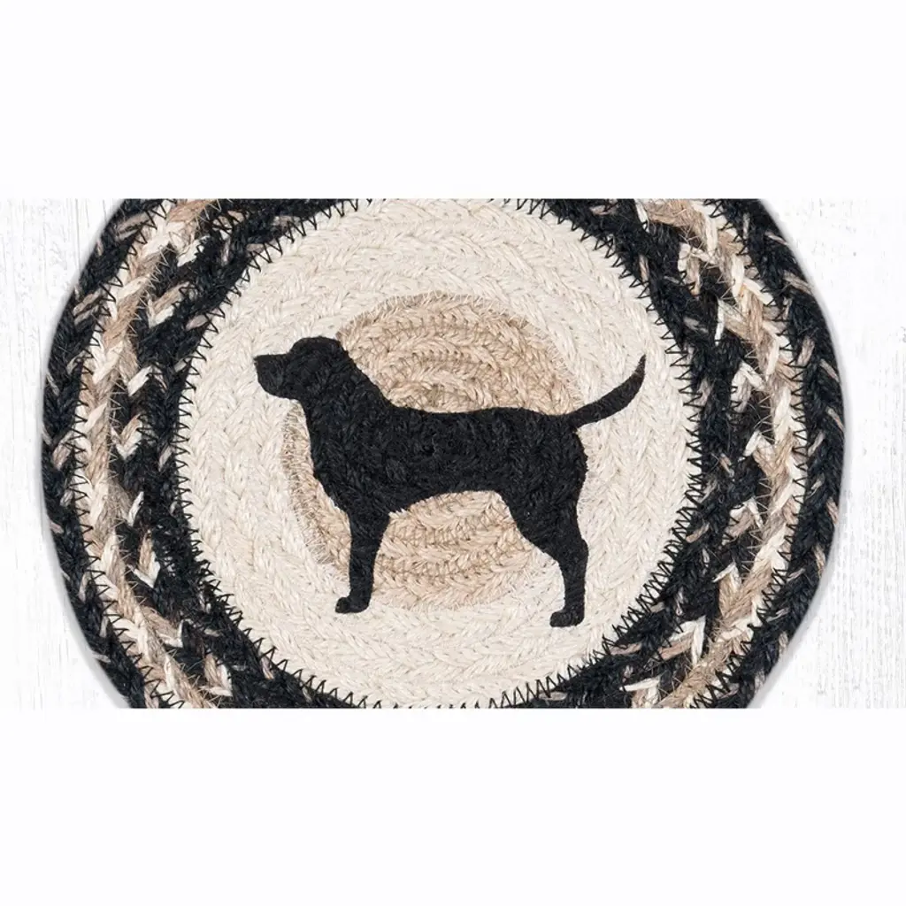 Earth Rugs Black Lab Round Trivet – 10"x10" Dog Silhouette Braided Hot Pad In Rustic Natural Fiber Design