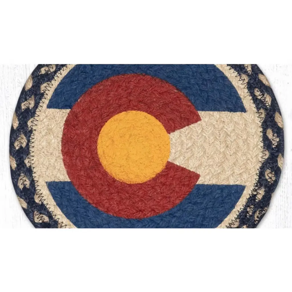 Earth Rugs Colorado Flag Printed Round Trivet – 10" Braided Jute Hot Pad