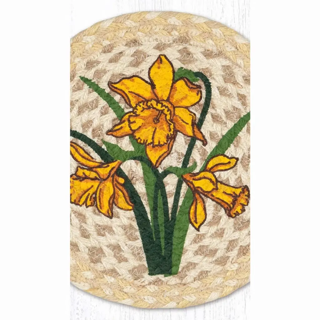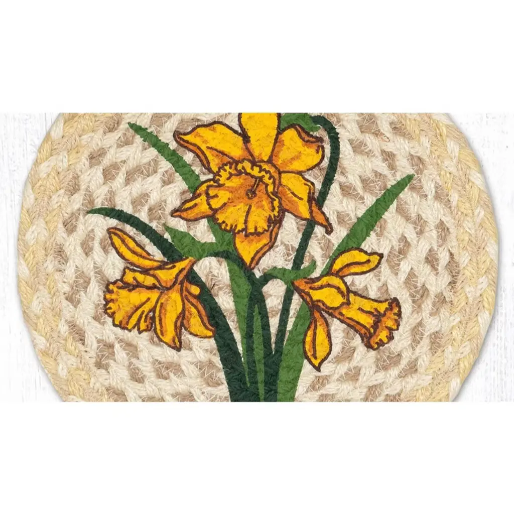 Earth Rugs Daffodil Printed Round Trivet – 10" Braided Jute Hot Pad
