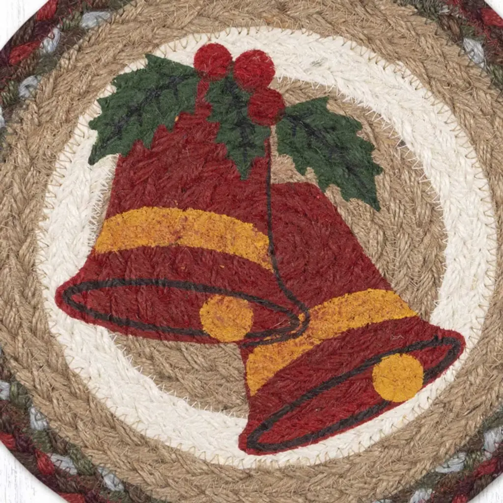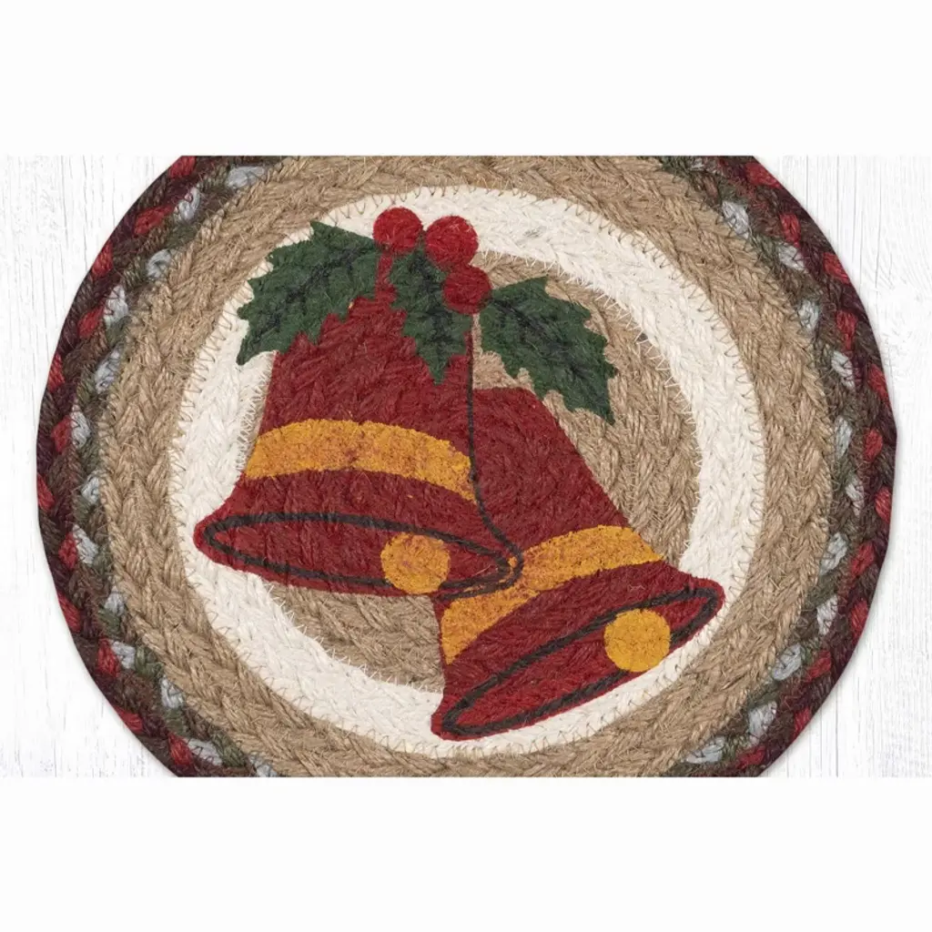 Earth Rugs Holiday Bells Round Trivet – 10" Christmas Jute Hot Pad With Festive Bell Print