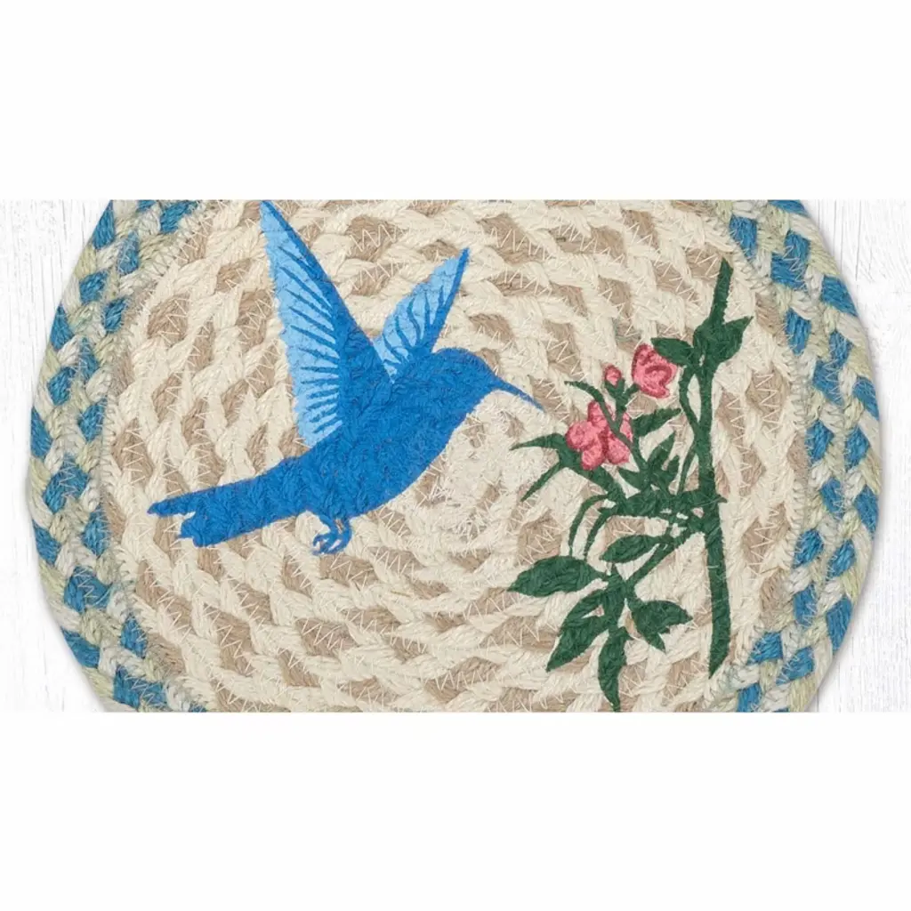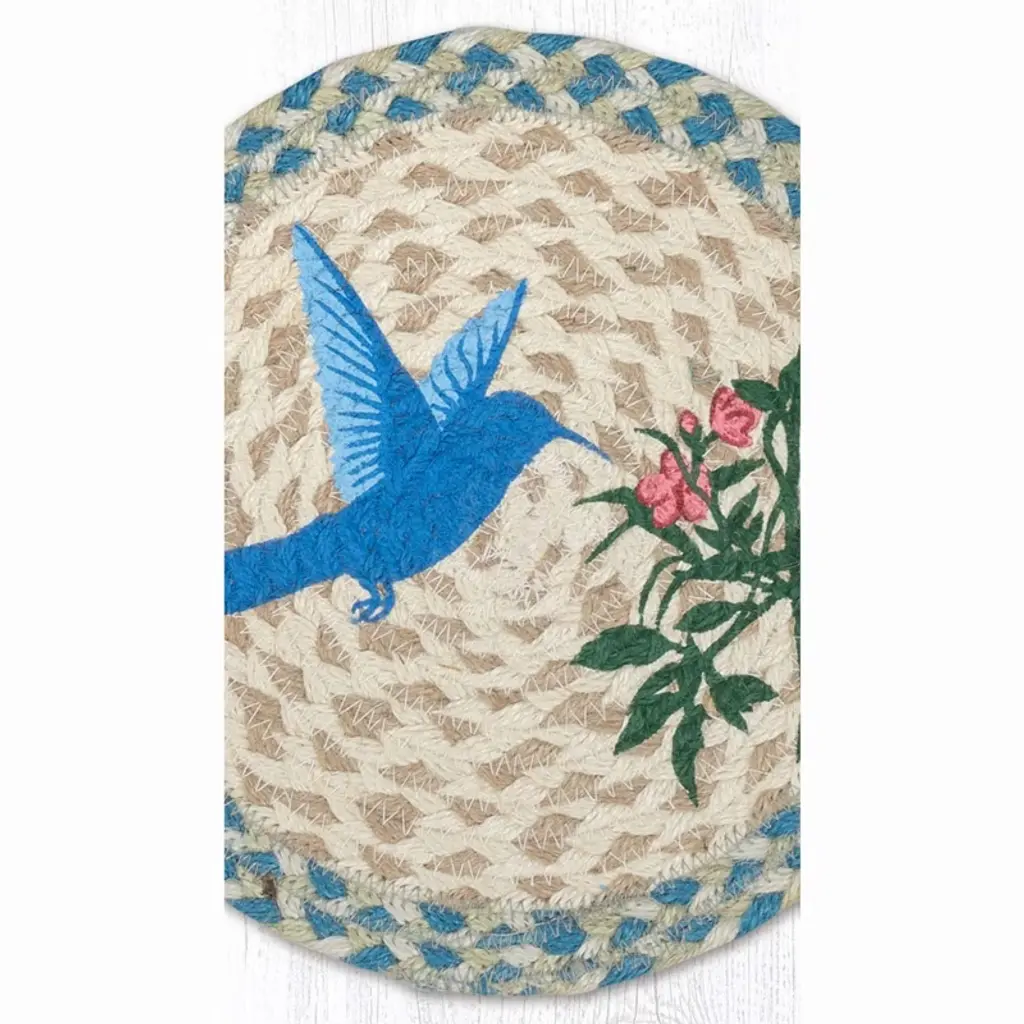 Earth Rugs Hummingbird Printed Round Jute Trivet 10"x10" Decorative Hot Pad