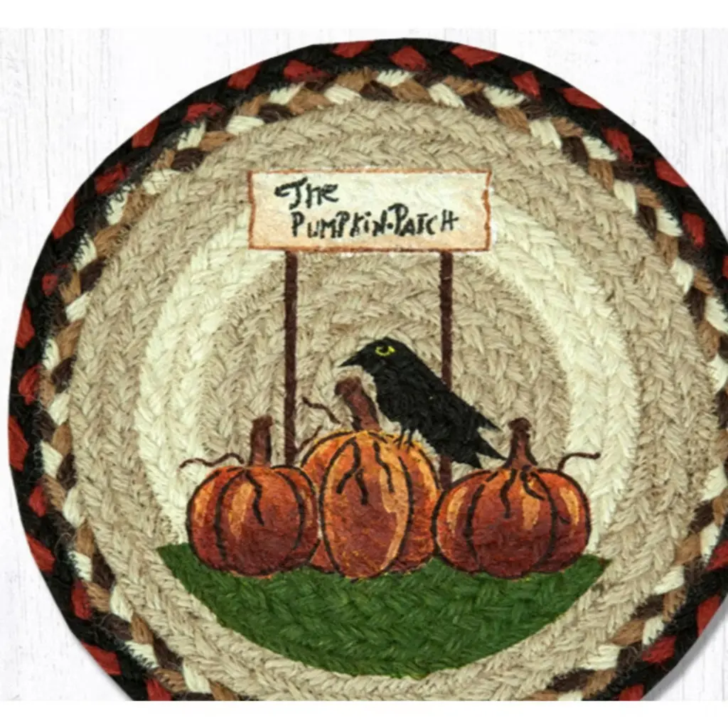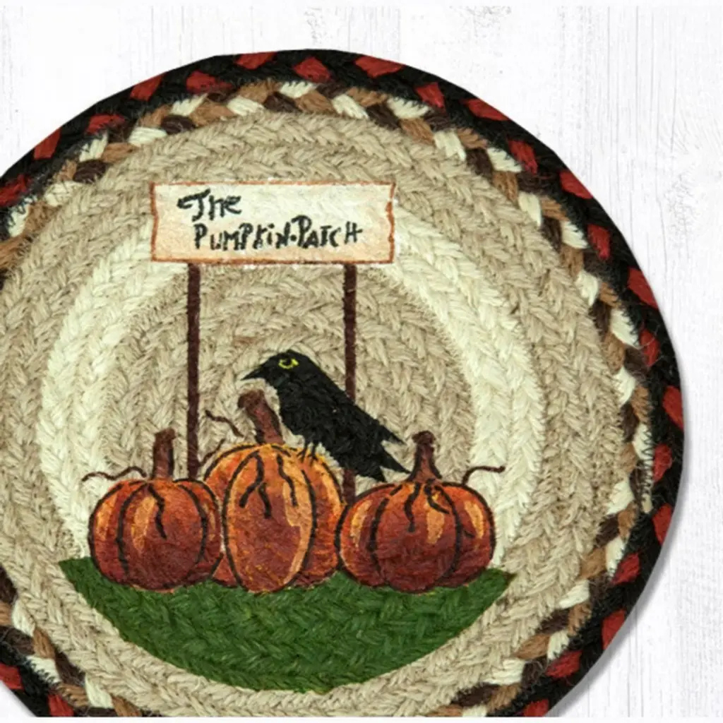 Earth Rugs Pumpkin Patch Printed Round Trivet 10"x10" – Autumn Braided Jute Hot Pad