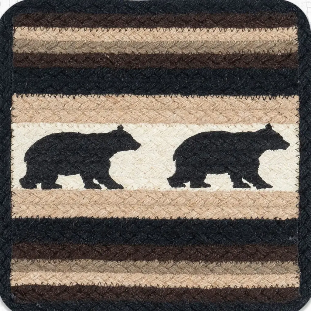 Earth Rugs V-313 Cabin Bear Square Jute Trivet 10"x10" Rustic Table Protector