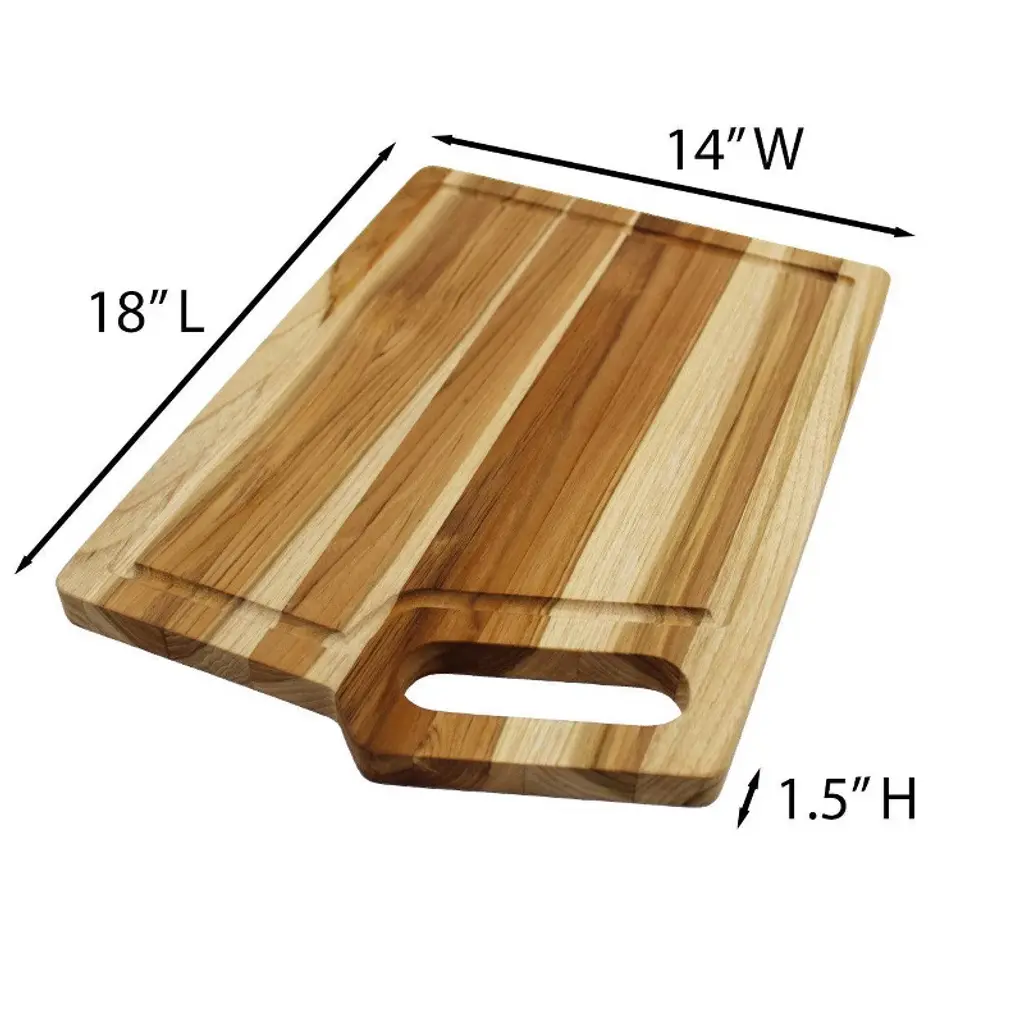 Ecodecors 18x14 Fsc Teak Edge Grain Cutting Board With Handle & Groove
