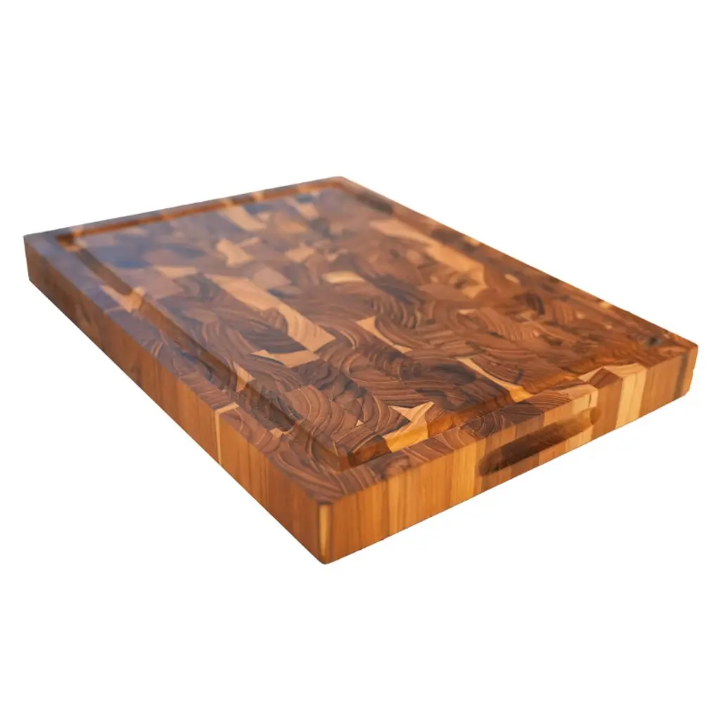 Elevate your everyday kitchen prep with the CBT-14E FSC Teak End Grain Cutting Board — a compact, elegant solution for slicing, dicing, and serving. Measuring 14" x 10" x 1.25", this board fits perfectly into any kitchen setup, from small spaces to high-efficiency prep zones. Handcrafted from solid FSC-certified teak wood, it combines premium quality with eco-conscious design. The end grain construction offers a smooth, knife-friendly surface that's both durable for daily use and stylish with a modern aesthetic. The reversible design allows you to chop on one side and serve on the other — perfect for cheeses, small charcuterie spreads, or breakfast toast displays. A 3-layer food-safe finish ensures lasting beauty by repelling water, stains, and odors. Ideal for tight countertops or as part of a teak cutting board set, the CBT-14E is your go-to for smaller tasks that deserve premium craftsmanship.
