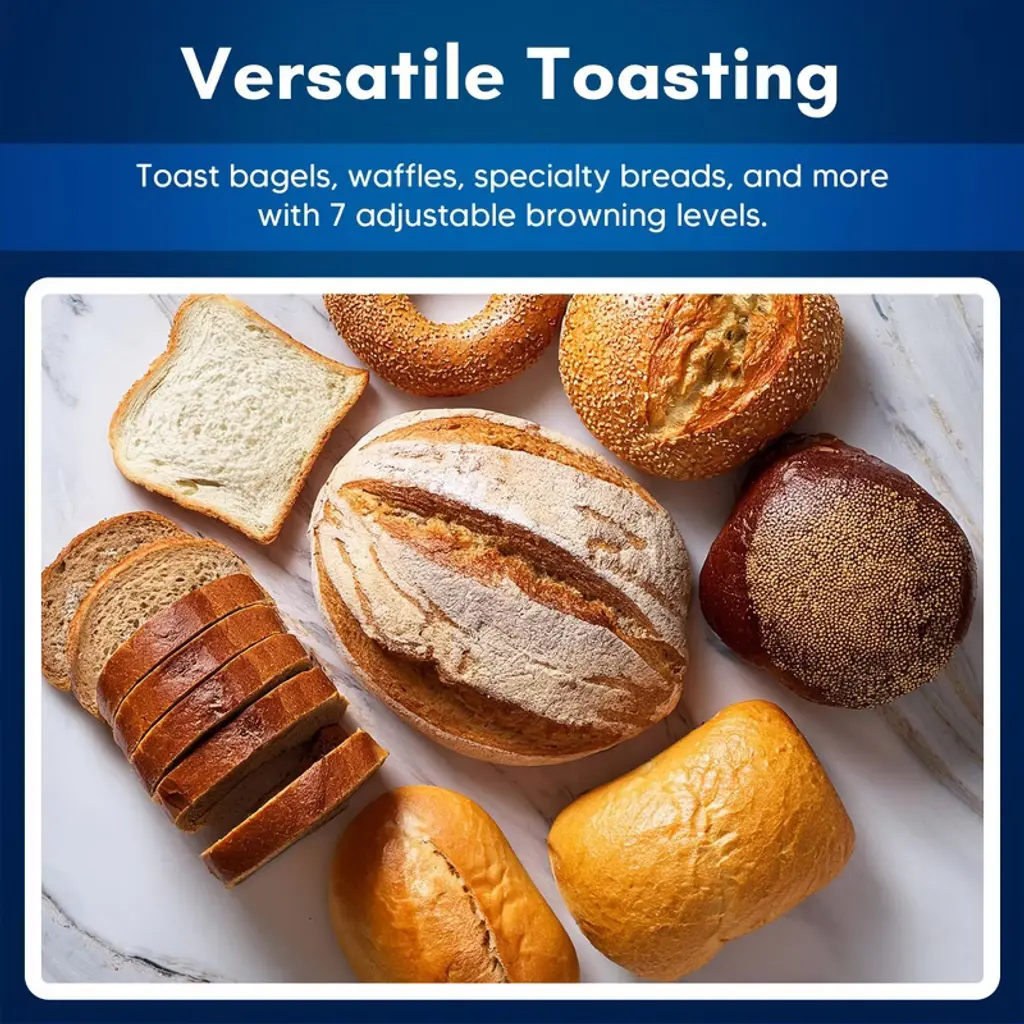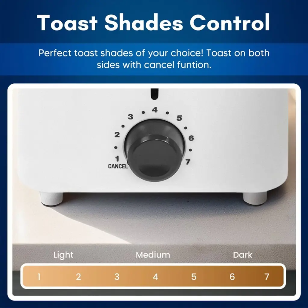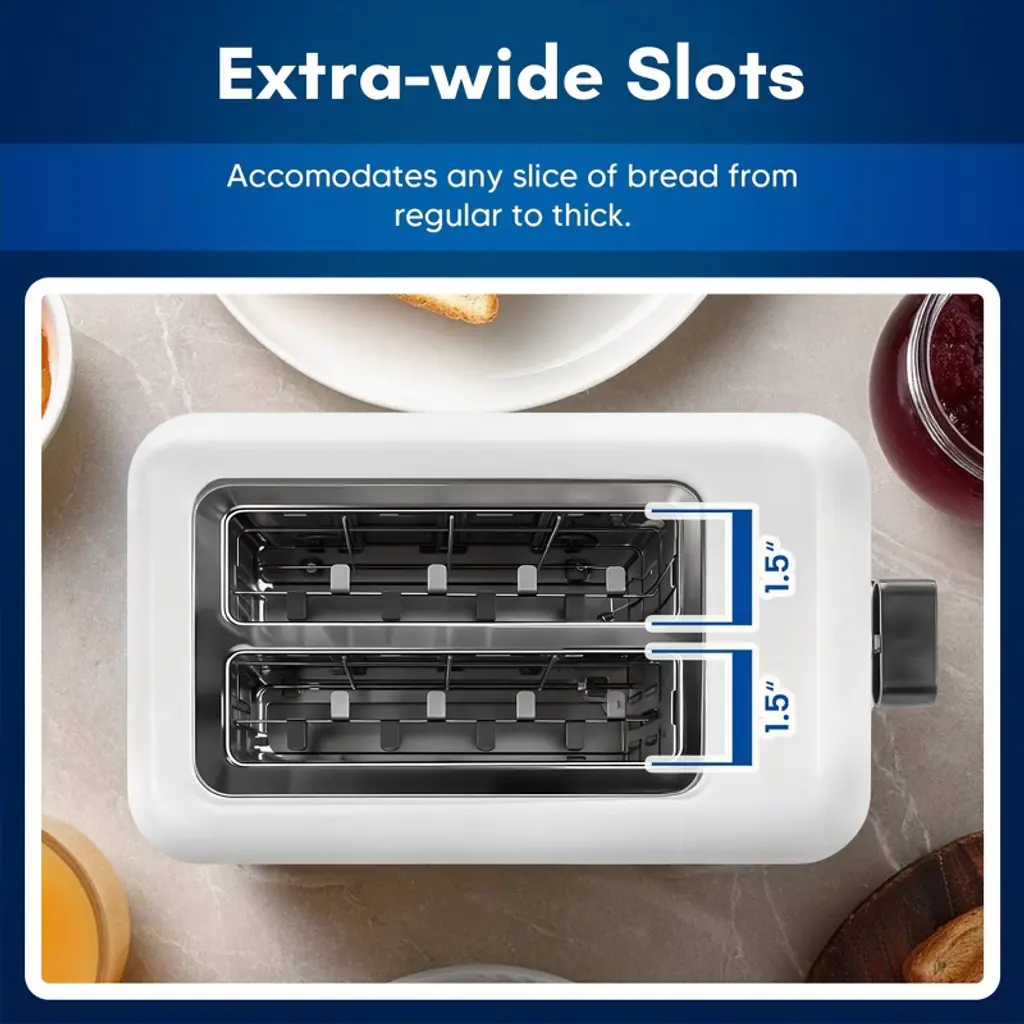 Start your day with perfectly toasted bread or bagels with the Elite Cuisine 2-Slice Toaster. Ideal for breakfast or lunch, its 1.25” extra-wide slots accommodate thick slices of Texas toast, garlic bread, pop-tarts, bagels, and English muffins. The push-down lever guides each slice evenly between the heating elements for a perfect golden brown toast. Choose from 7 variable toasting shades to achieve your desired level of crispiness. The convenient Cancel setting allows you to stop the toasting cycle at any time, and the cool-touch body ensures safe handling. The slide-out crumb tray makes cleanup quick and easy.
