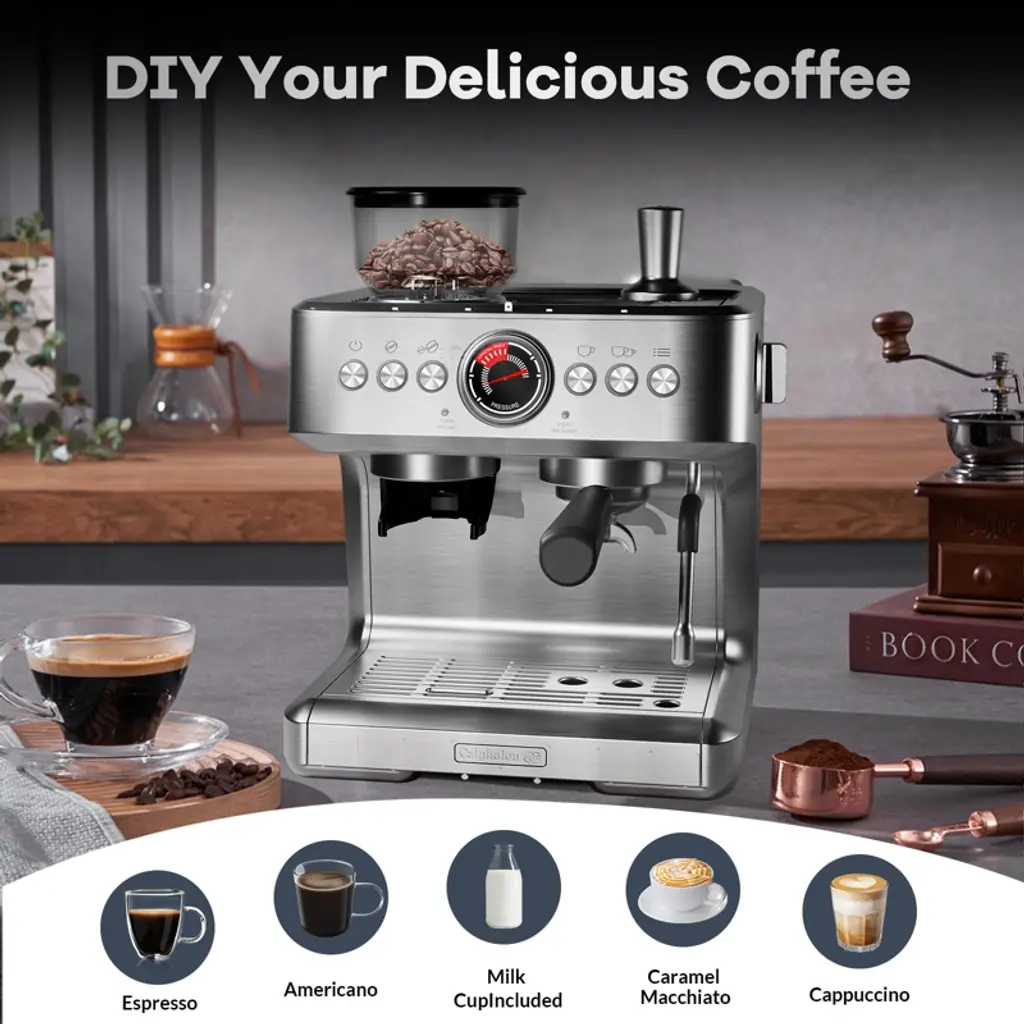 Espresso Machines With Grinder, Professional Automatic Espresso Maker With Milk Frother for Cappuccino Latte, Macchiato, 85oz Removable Water Tank, Stainless Steel