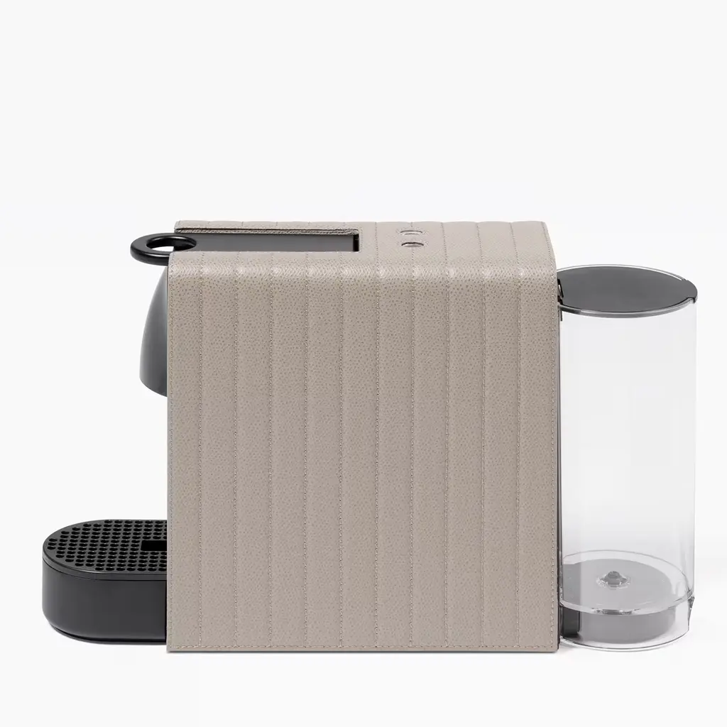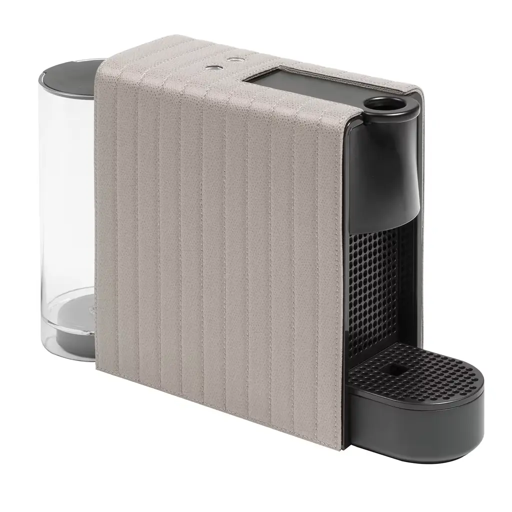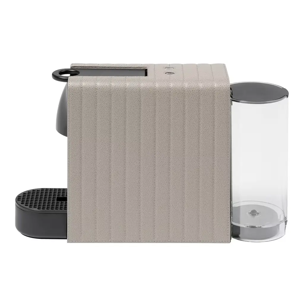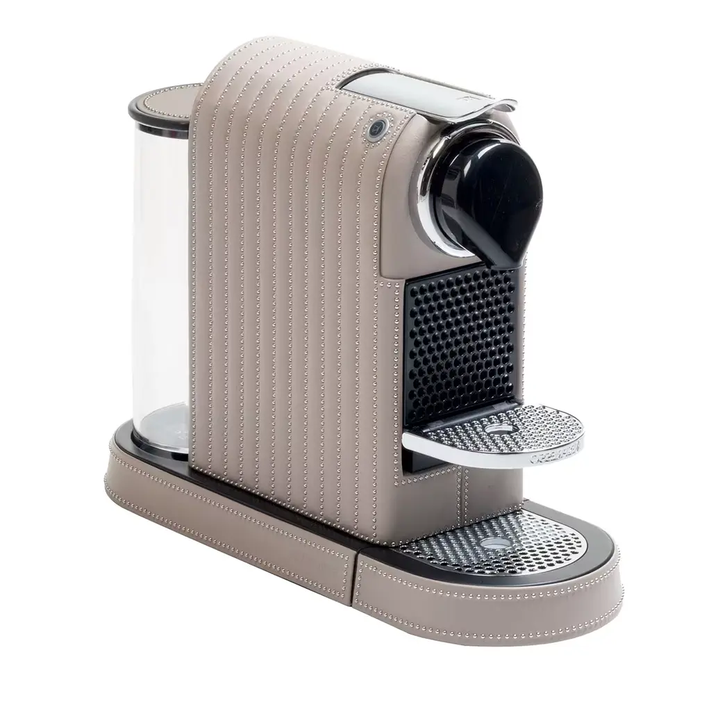 Original leather-bound Nespresso machine with a removable cover featuring a straight lines quilt pattern. It uses classic Nespresso capsules. Voltage available: 110V (price available on request) or 220V.