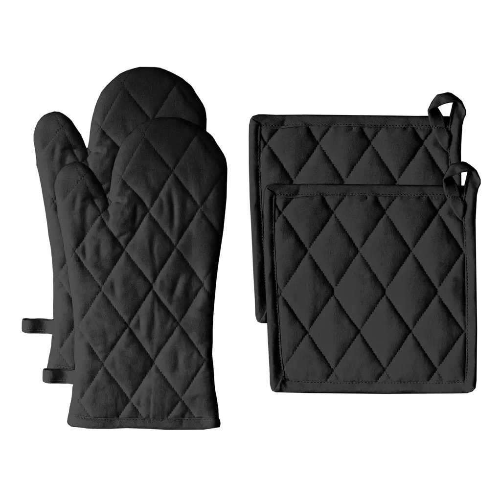 2 Pair of oven mitts heat impervious to ensure your hands while dealing with hot pots, skillet, dishes, goulashes, and that's only the tip of the iceberg. 2 Pair of the pot holder, Utilize like pocket broiler gloves when holding hot dishes, at that point lay your dishes on them like hot cushions to ensure kitchen surfaces. With its distinctive puckered texture and ample filling, the waffle-weave mitt and potholder set protects hands from hot dishes and pans. For a coordinated cooking experience, use this set to complete your kitchen essentials.
