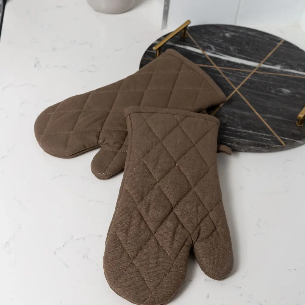 With its distinctive puckered texture and ample filling, the solo oven mitt protects hands from hot dishes and pans. For a coordinated cooking experience, pair our solo oven mitt with the matching potholder and dish towel. Created with 100% heavy duty cotton fabric Oven mitts measure 7" X 12" Crafted with a beautiful solo waffle design