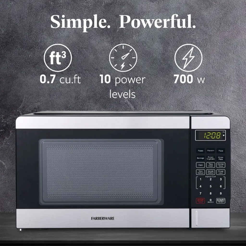 Farberware 0.7 Cu. Ft. Compact Microwave Oven, 700w, Stainless Steel