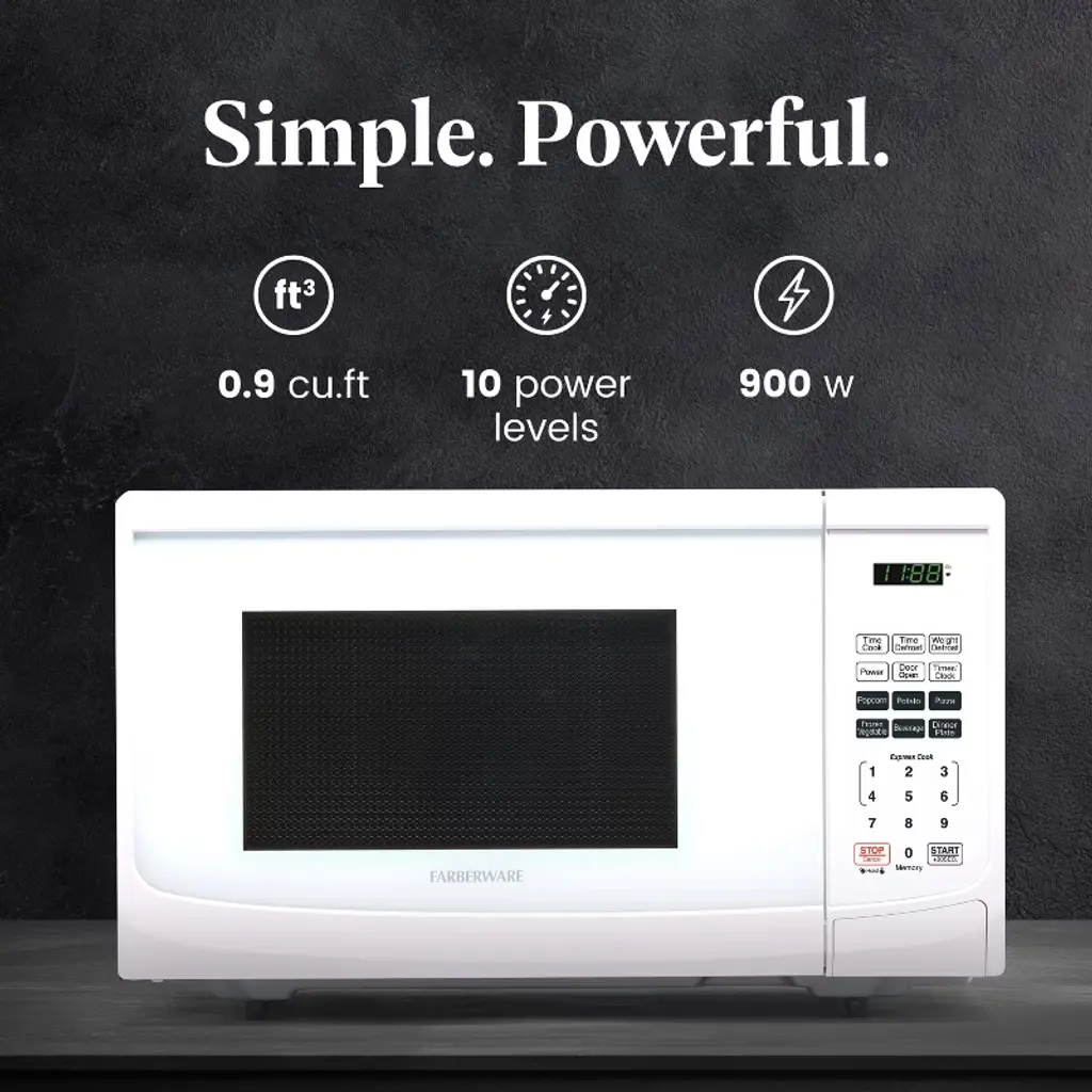 Farberware 900-watt 0.9 Cu. Ft. Countertop Microwave Oven With Led Lighting And Child Lock, White