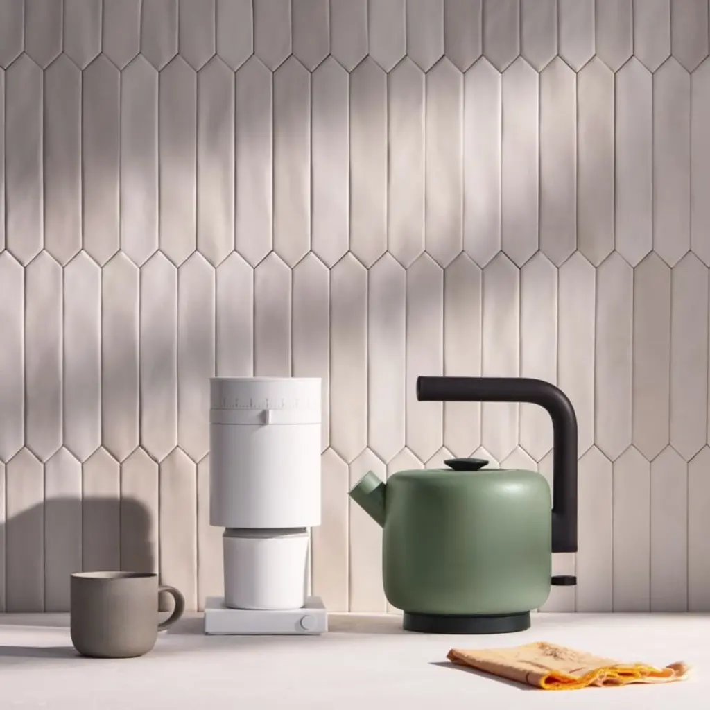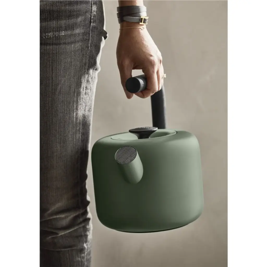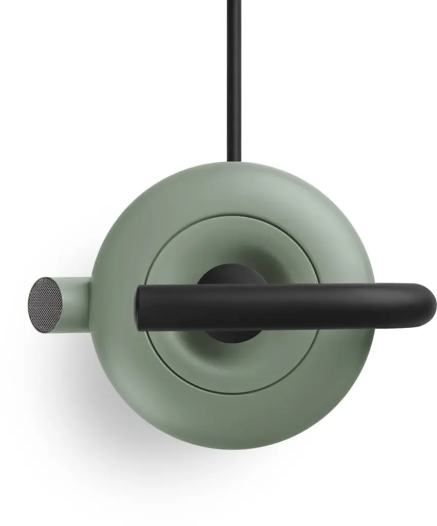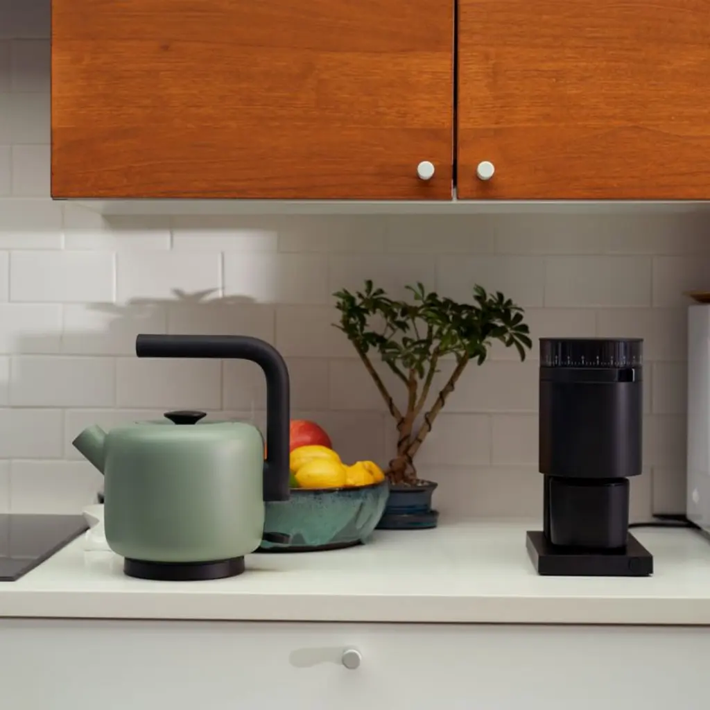 With its rounded contours, tubular curves, smoky green color and black accents, this electric kettle charms on the countertop as it boils up water for tea, pour-over coffee or instant oatmeal. At the ready for all your daily hot water needs, the 1.5-liter kettle brings water to a boil with a flip of its intuitive on-off switch. The arched black handle not only looks modern and sculptural, it's designed for easy one-handed pouring.