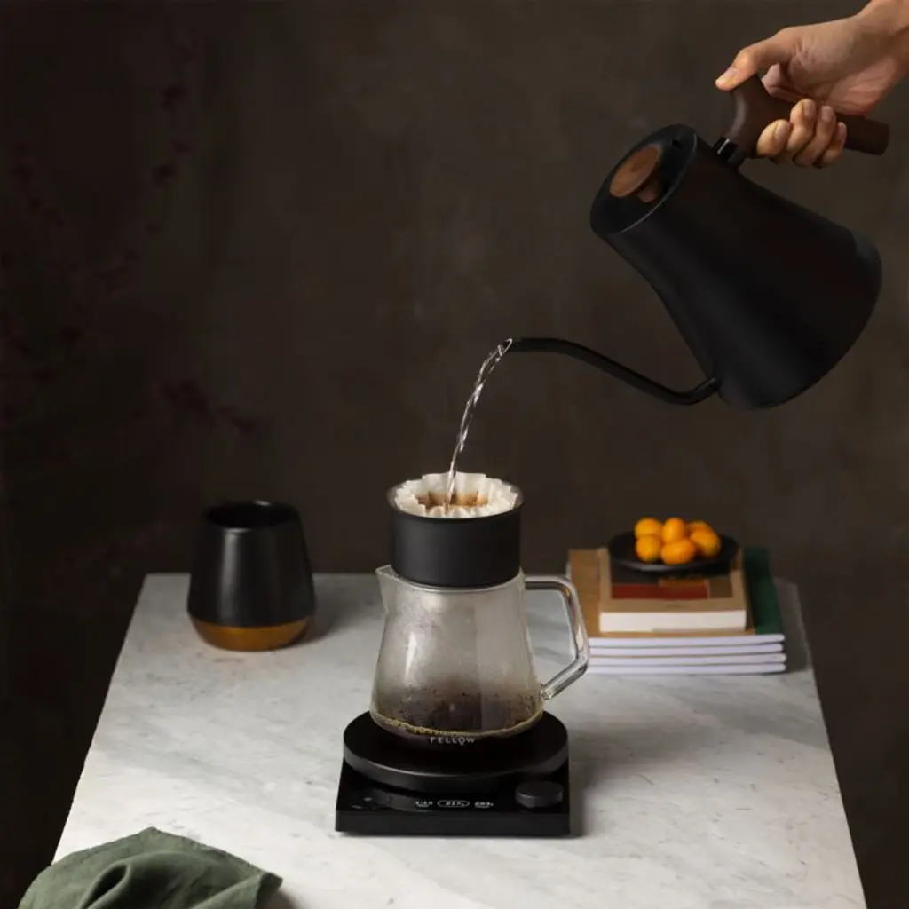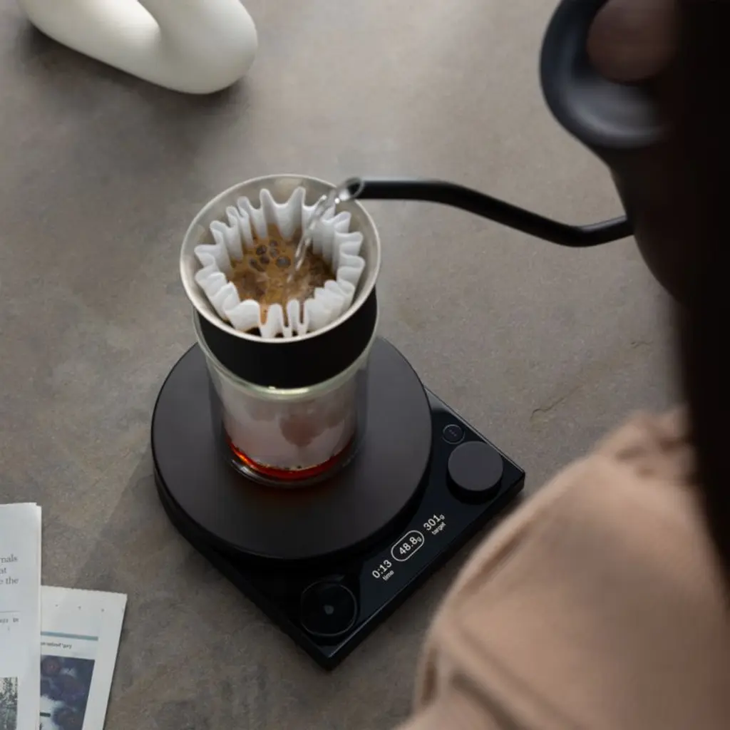 Fellow expands its range of precision-brewing tools with this beautifully minimalist coffee scale. Topped with a smoked glass platform, the black scale offers instant ratio calculations for impeccable pour-over coffee. Choose from three modes: Timer, Weight or Brew Assist, which guides you through the brewing process. Pairing perfectly with Fellow's kettles, grinders and coffee canisters, this ultra-modern scale is an essential for perfecting pour-over.