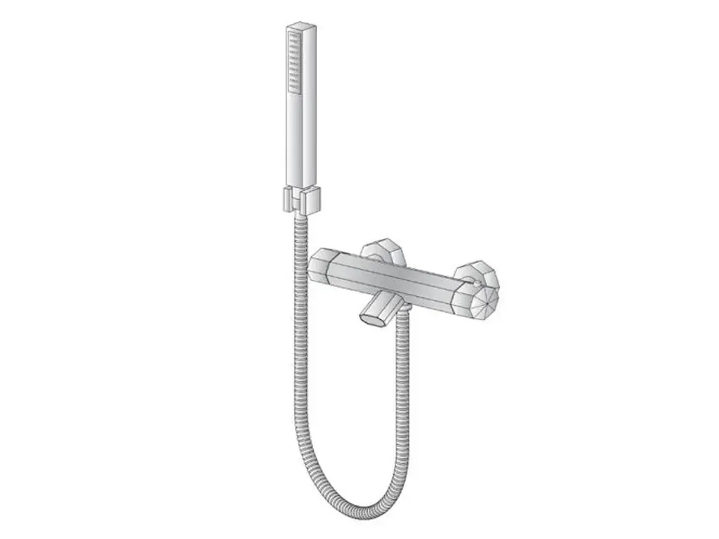 FIRENZE 3267TM304 - External thermostatic assembly for bathtub/shower, complete with Firenze 304 hand-held shower and manual diverter.Rubinetterie Stella offers numerous possibilities for customizing its collections. In fact, each of the finishes, applicable to all the collections, has been designed to enhance the charm of the products.Chrome to accentuate the classicism, Bronze and Brass to enhance the retro tone, and Nickel, proposed in the Nickel PVD and Brushed nickel, for a modern retro effect with more sophisticated tones. The most precious galvanic finishes such as Silver and Gold or Rose Gold are created with a final carat of up to 23.5Kt, while PVD protections recently introduced are the extension of the whole range.PVD FinishPhysical Vapor Deposition, often abbreviated as PVD, is a method for coating all kinds of materials with a very strong adherence and high hardness, allowing chromatic variations - all similar to galvanic finishes - and with different aspects depending on the substrate to which they are applied.The decorative PVD treatment, used by Rubinetterie Stella, allows the deposition of a thin but very hard layer on the article to be coated to obtain a series of characteristics:- Abrasion resistance due to hardness (up to 1000/2500 HV) obtained on the treated surface- Inalterability to UV rays and resistance to solvents and corrosion- Coloring with great chromatic effect such as gilding, nickel plating, gunmetal black and many others- Wide range of surface finishes ranging from bright, satin polish to various shades of opacity- The PVD finish is hypoallergenicFinally, it is worth pointing out that the entire PVD process is harmless to the environment. The PVD process is safe, clean and sustainable, it is non-toxic and is even used for the treatment of medical instruments such as for scalpel blades, where sharpening and its duration are important, as well as for kitchen equipment, such as cutlery, trays and furnishing accessories intended for prolonged contact with people