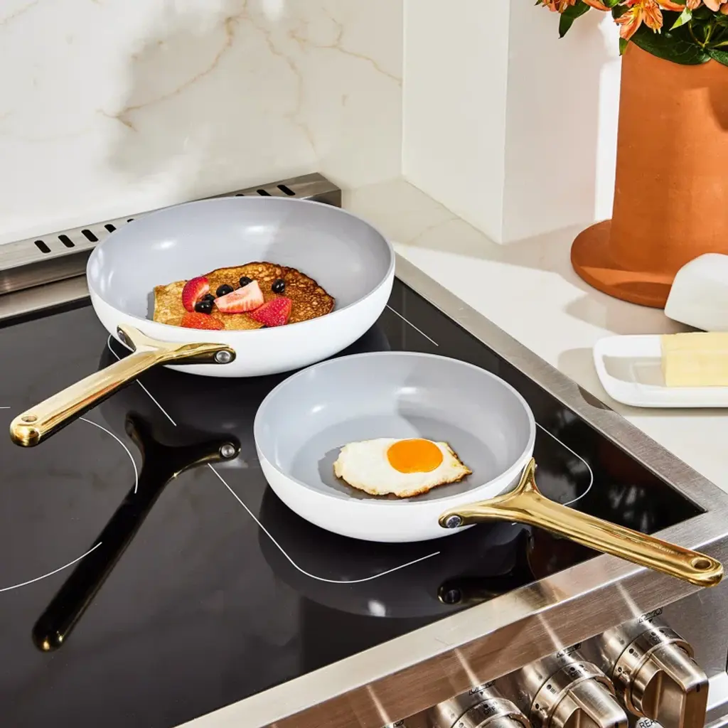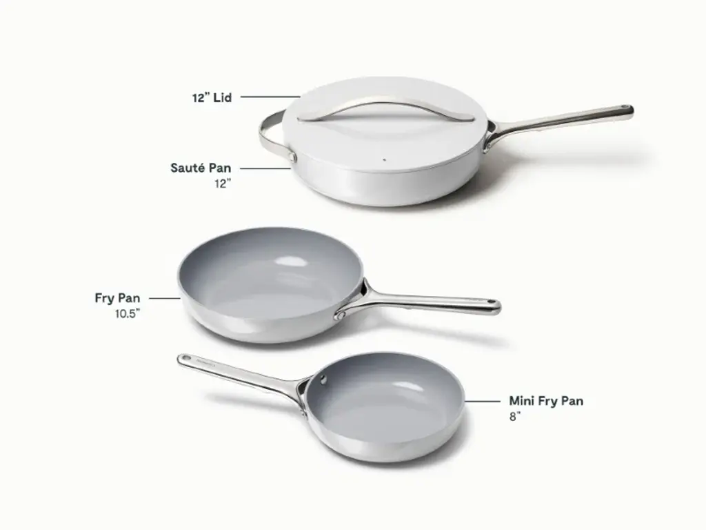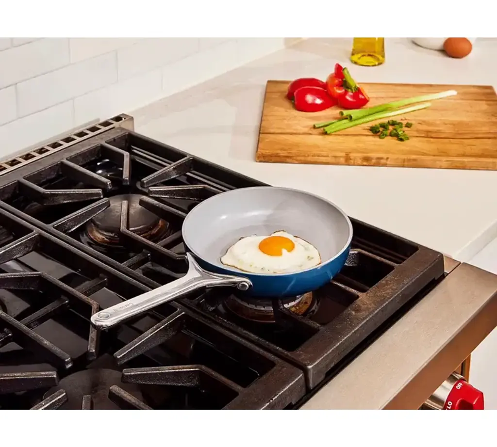 Our 4 piece Ceramic-Coated Pan Trio allows for healthy cooking in the kitchen without harmful chemicals: use for slide-off-the-pan eggs/, sautéing veggies, and more. Featuring a non-toxic ceramic-coated interior, this trio makes cooking easier than ever, cleaning (dare we say) enjoyable, and adds a pop of color to any home.