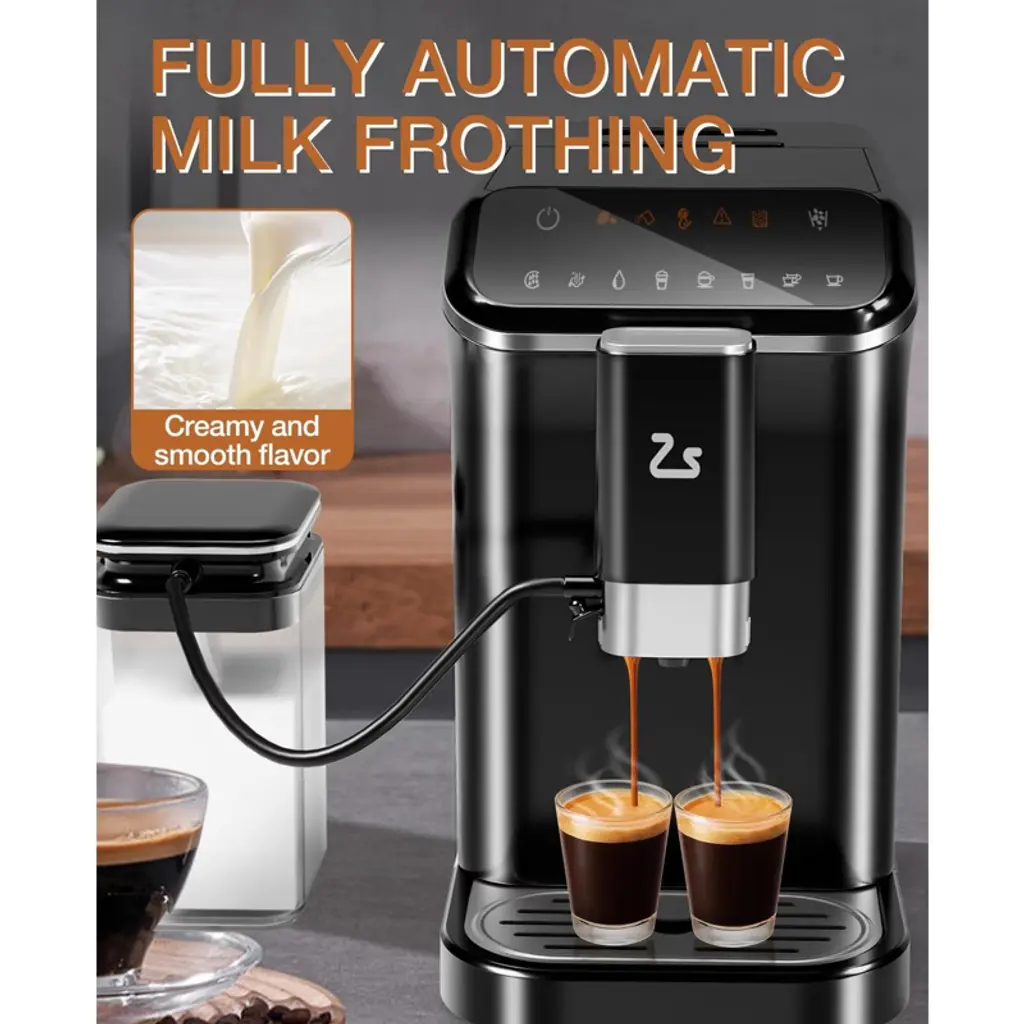 Garvee Fully Automatic Espresso Machine With Built-in Grinder And Milk Frother - One-touch Operation For Latte, Cappuccino,1.5l Water Tank
