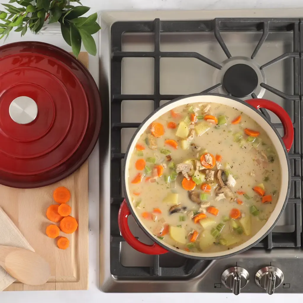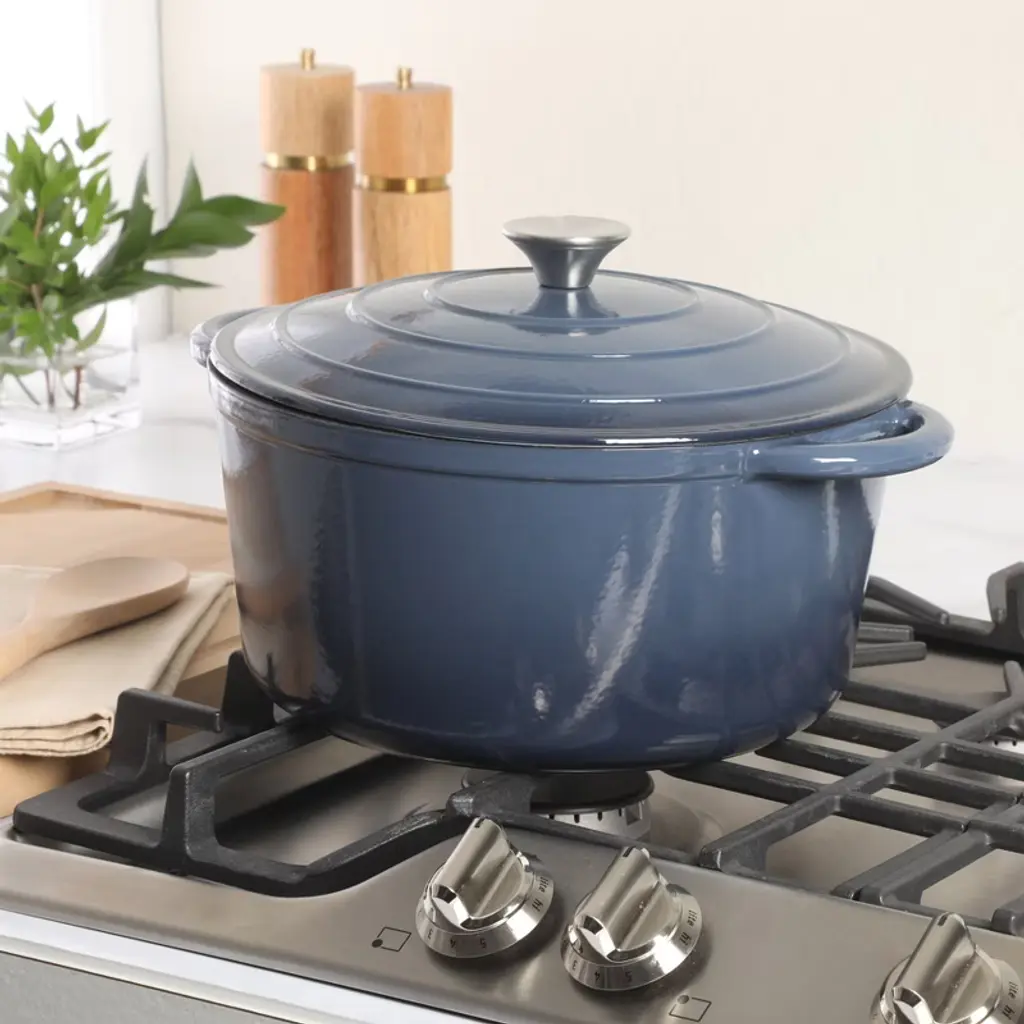 "A cast iron Dutch oven is a classic piece of cookware and a worthwhile investment for new and experienced home chefs. The Addlestone 7-quart Enameled Cast Iron Dutch Oven with Lid is safe to use on all stovetops and in the oven up to 500°F. As a mult-use pot, this Dutch oven can slow-cook, bake, deep-fry and sear perfectly. Durable cast iron construction distributes and retains heat nicely and evenly, leaving no spot uncooked. Beautifully coated with porcelain enamel finish, it is easy to clean and maintain as it requires no constant seasoning compared to a pre-seasoned cast iron cookware. It comes with a self-basting lid to lock in the heat and redirect the moisture back onto the food. And when all the work is done, serve a warm, homemade meal in this vibrant Dutch oven that deserves to be at the center of every spread. Hand wash only. Make every home a Gibson Home. A multi-category collection of kitchen and dining essentials, Gibson Home offers style and value for everyday living. Enjoy preparing, cooking, and serving delicious meals in a wide selection of dinnerware, cookware, bakeware, cutlery, glassware, and more. Designed with function, reliability, and versatility, Gibson Home provides dining and entertaining staples to make every mealtime or gathering a culinary success" A cast iron Dutch oven is a classic piece of cookware and a worthwhile investment for new and experienced home chefs. The Addlestone 7-quart Enameled Cast Iron Dutch Oven with Lid is safe to use on all stovetops and in the oven up to 500°F. As a multi-use pot, this Dutch oven can slow-cook, bake, deep-fry and sear perfectly. Durable cast iron construction distributes and retains heat nicely and evenly, leaving no spot uncooked. Beautifully coated with porcelain enamel finish, it is easy to clean and maintain as it requires no constant seasoning compared to a pre-seasoned cast iron cookware. It comes with a self-basting lid to lock in the heat and redirect the moisture back onto the food. And when all the work is done, serve a warm, homemade meal in this vibrant Dutch oven that deserves to be at the center of every spread. Hand wash only. Make every home a Gibson Home. A multi-category collection of kitchen and dining essentials, Gibson Home offers style and value for everyday living. Enjoy preparing, cooking, and serving delicious meals in a wide selection of dinnerware, cookware, bakeware, cutlery, glassware, and more. Designed with function, reliability, and versatility, Gibson Home provides dining and entertaining staples to make every mealtime or gathering a culinary success. * A BOX INCLUDES: One 7-quart enameled cast iron Dutch oven with lid * BEST IN VERSATILITY: Cast iron Dutch oven is an exceptional piece of cookware to braise and bake, fry and sauté, simmer and serve. Heavy-duty construction promotes superior heat distribution and retention. * PORCELAIN ENAMEL FINISH: Enameled surface never needs seasoning. Glossy finish is easy to clean and hard to miss with its beautiful, vibrant colorway. * EASY-GRIP HANDLES: Sturdy side handles offers a strong grip when serving from the oven to the table. * SELF-BASTING LID: Drip points underneath the lid allow continuous basting to improve flavor and texture * INDUCTION-FRIENDLY: Safe to use on induction, gas, electric, halogen and ceramic stoves * OVEN SAFE: Up to 500°F * CARE INSTRUCTIONS: Hand wash only