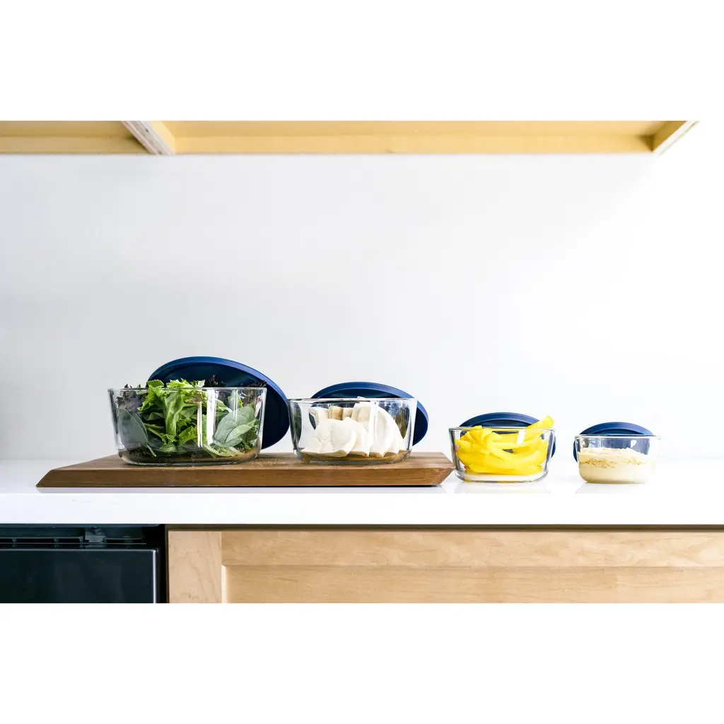 Glass Food Storage Set - Round Nesting, 8-Piece, Bpa-Free, Airtight Lids, Microwave & Oven Safe - 16 Piece Set (8 Containers + 8 Lids) - Blue