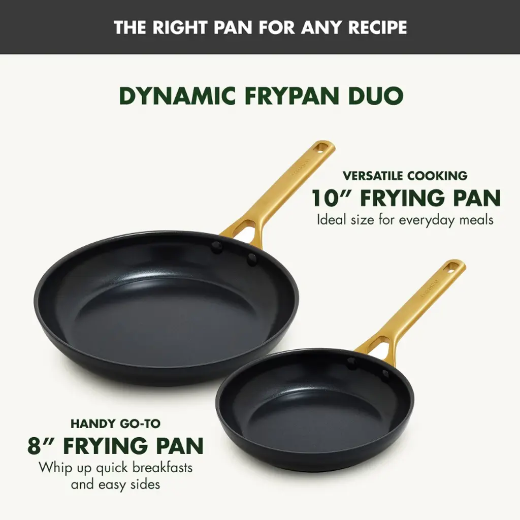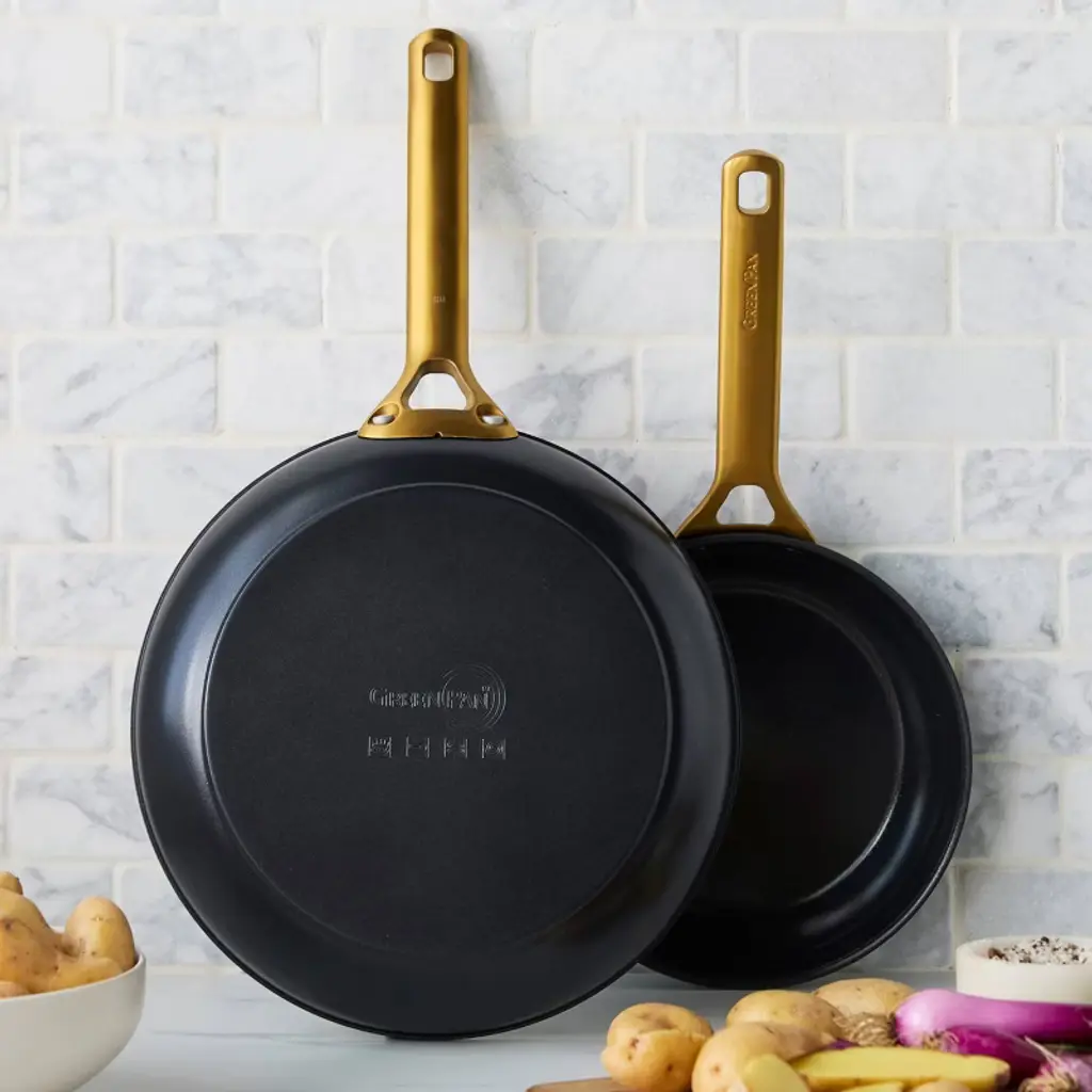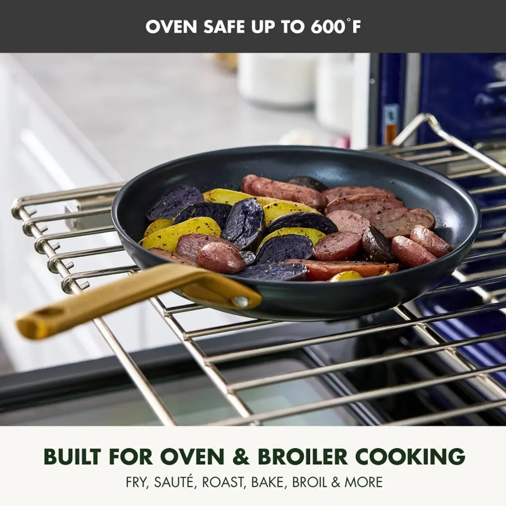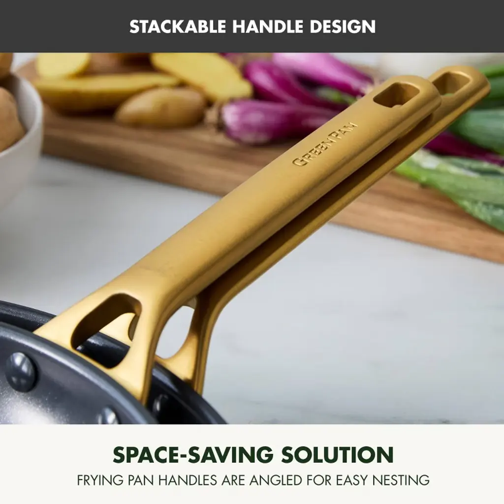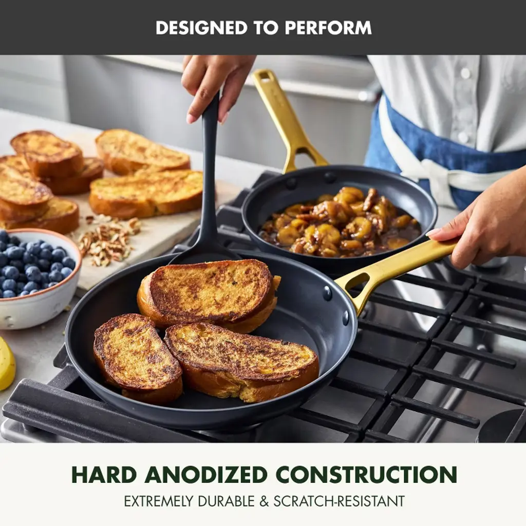 GreenPan has reimagined their bestselling Reserve collection with subtle architectural details and a sophisticated edge—introducing Reserve Pro, where form meets groundbreaking function. Inspired by neoclassical design, this collection makes a stunning contemporary statement in any kitchen. At the core is Thermolon™ 9G, GreenPan’s most advanced ceramic nonstick coating yet. Infused with diamonds for incredible durability and responsiveness, it’s metal utensil safe, free of PFAS, and crafted for confident cooking morning to night. The duoforged hard anodized aluminum body offers lasting strength and even heat distribution, while gold-tone stainless steel handles add a refined touch and a secure, comfortable grip. Finished with durable glass lids featuring a silicone rim to seal in heat and flavor, this collection is oven safe up to 600˚F (lids to 392˚F) and dishwasher safe for effortless cleanup.