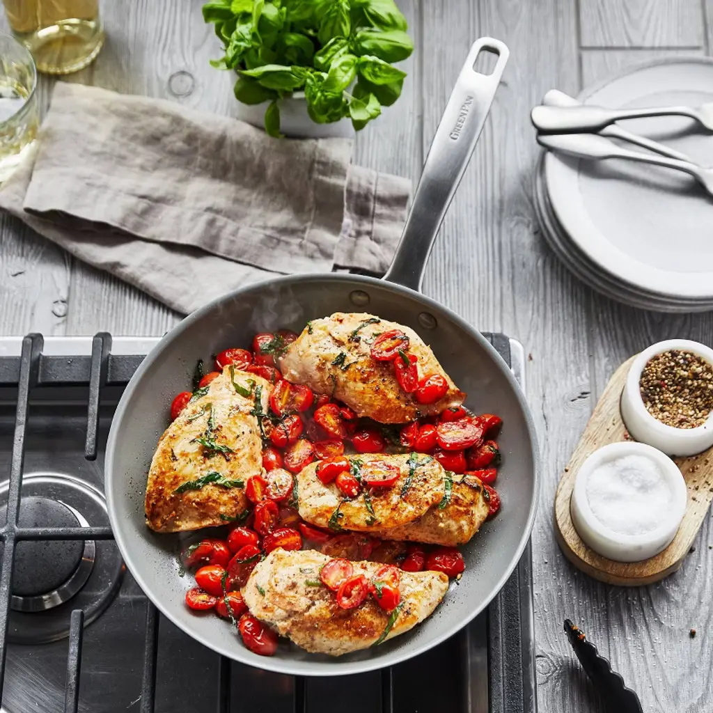 Designed for everyday success, the Chatham Collection features GreenPan’s signature healthy ceramic nonstick coating. It’s reinforced with diamonds so you can simmer, braise, and sear with ease, plus it’s metal utensil safe. The resilient hard anodized aluminum body won’t warp, chip, or scratch and it’s free of PFAS, PFOA, lead, and cadmium, too. In a versatile 8” size, this frypan features drip-free edges for easy pouring and an oven-proof stainless steel handle for a secure grip.