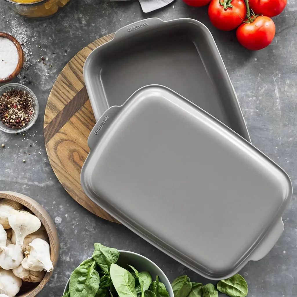 Greenpan Premiere Ovenware Ceramic Nonstick Rectangular Pan 13"x9" With Lid Gray
