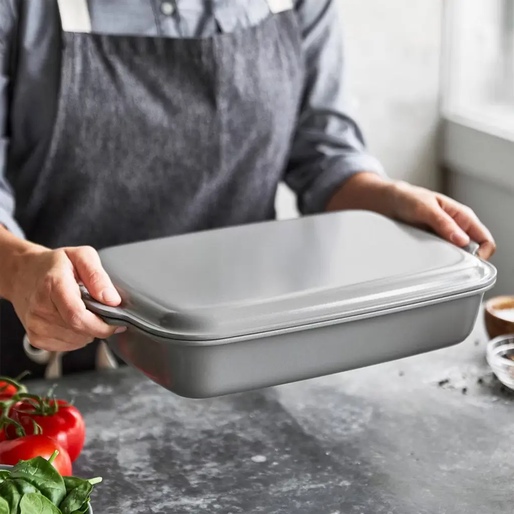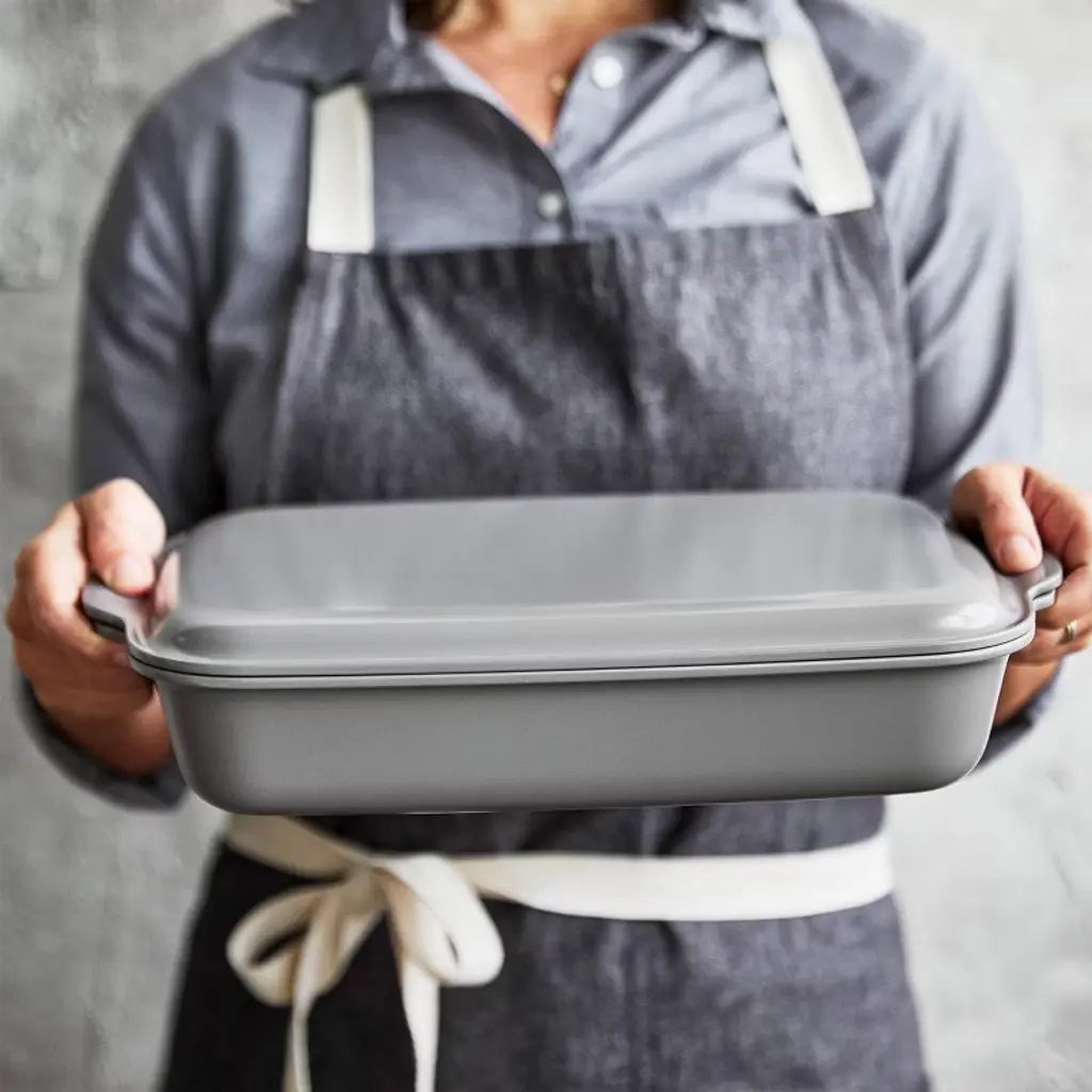 Our kitchen team has fallen in love with this pan. They’ve been making classic casseroles, family- sized lasagna, slow roasted meats, and more. And those built-in handles won’t break off the way ceramic ones can. This pan is crafted from cast aluminum to deliver quick, even heating and remarkable durability. The unique heavyweight gauge prevents warping and popping to deliver years of sweet and savory meals. And cleanup is effortless thanks to our healthy ceramic nonstick, which is free of PFAS, PFOA, lead, and cadmium for worry-free meals.Discover better oven cooking with Premiere.