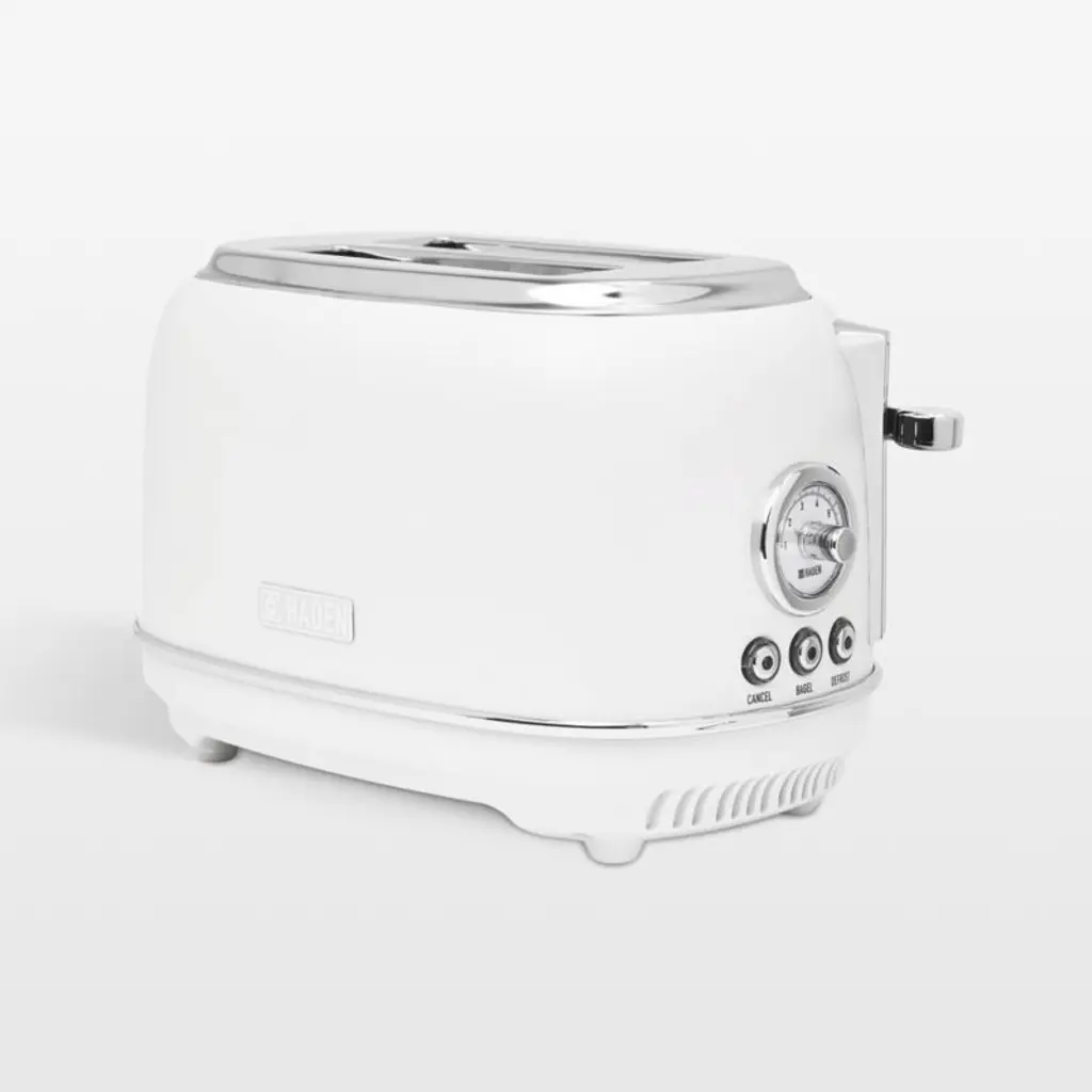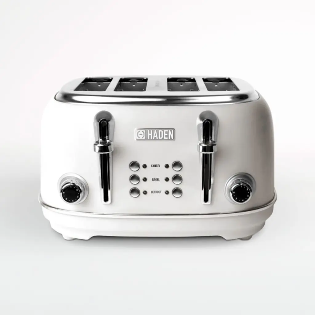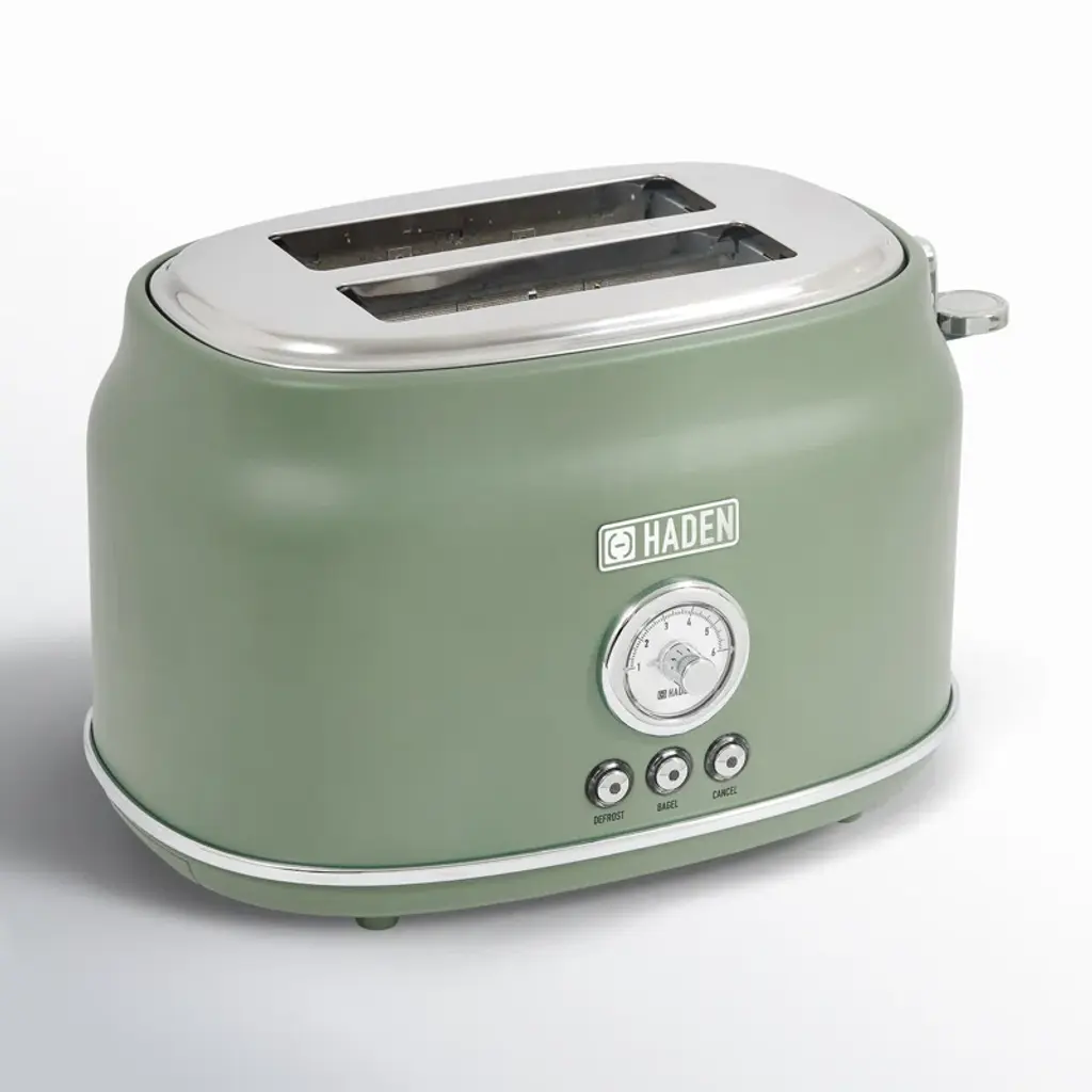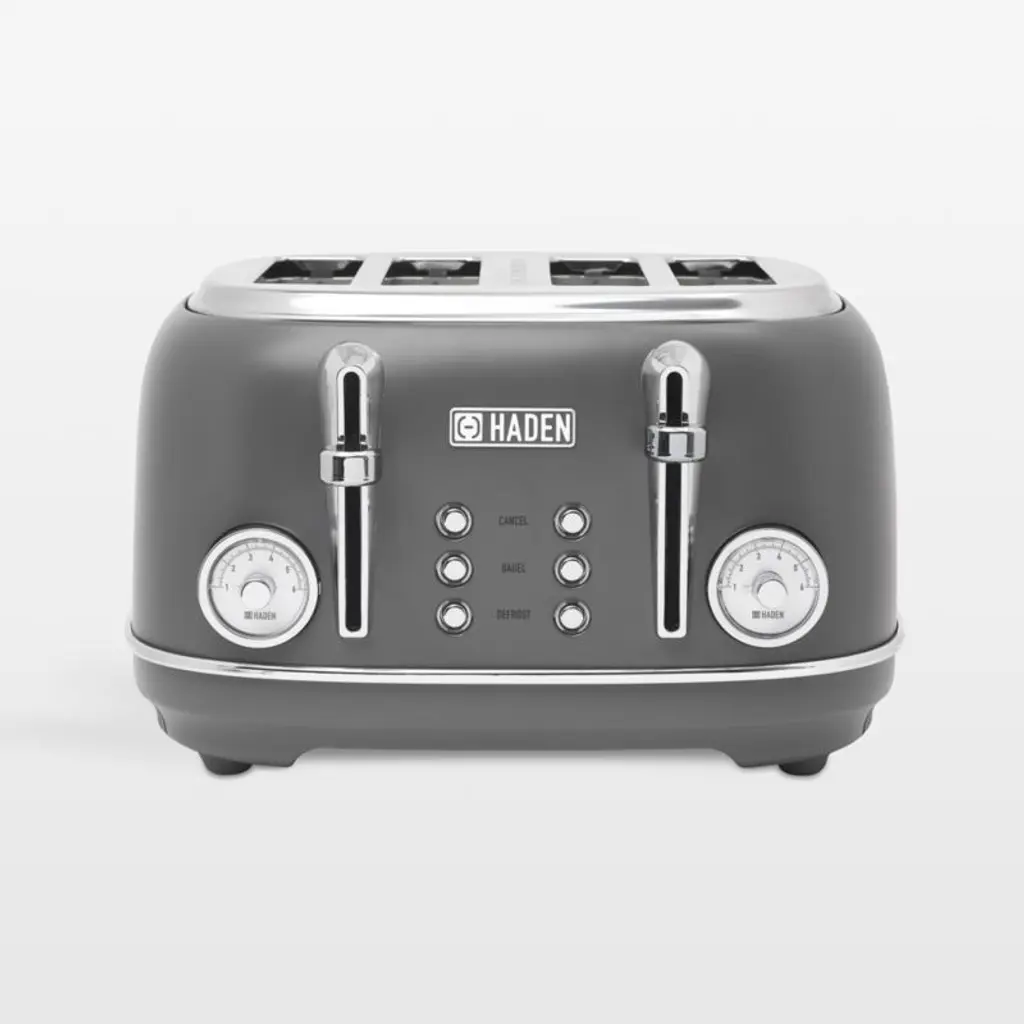 Upgrade your morning routine with the Haden Chelsea 2-Slice Wide Slot Toaster. Its sleek, durable stainless steel housing is a hallmark of modern kitchen convenience and its simple beauty is a perfect addition to any countertop or breakfast station. Featuring 2 extra-wide slots, this electric toaster fits a wide range of bread, from standard-sized to thick artisanal slices. Bagels and frozen waffles easily slide in, guaranteeing a toasting experience of perfection. The 2 slot toaster's self-centering function helps keep your bread and bagels perfectly positioned for even toasting, while the adjustable browning control empowers you to tailor the toastiness to your liking. Whether you prefer a light golden hue or a deep, rich crunch, this bread toaster accommodates your taste. The cancel, defrost, and bagel features of the bagel toaster adapt to your needs for added convenience. Cleanup is easy with the removable crumb tray that traps any residue, maintaining the toaster's fresh and clean appearance and functionality. Inspired by British homes, architecture, and landscapes, the Chelsea toaster is available in modern, elegant colors including glossy grey and chrome. The Haden Chelsea 2-Slice Countertop Toaster embodies the fusion of innovation and modern functionality. Add this toaster to your kitchen necessities and take your toasting experience to the next level.