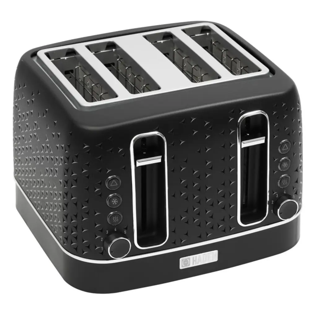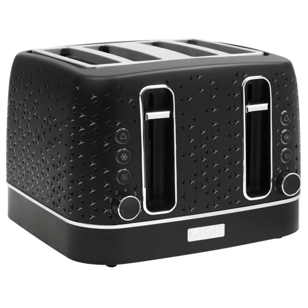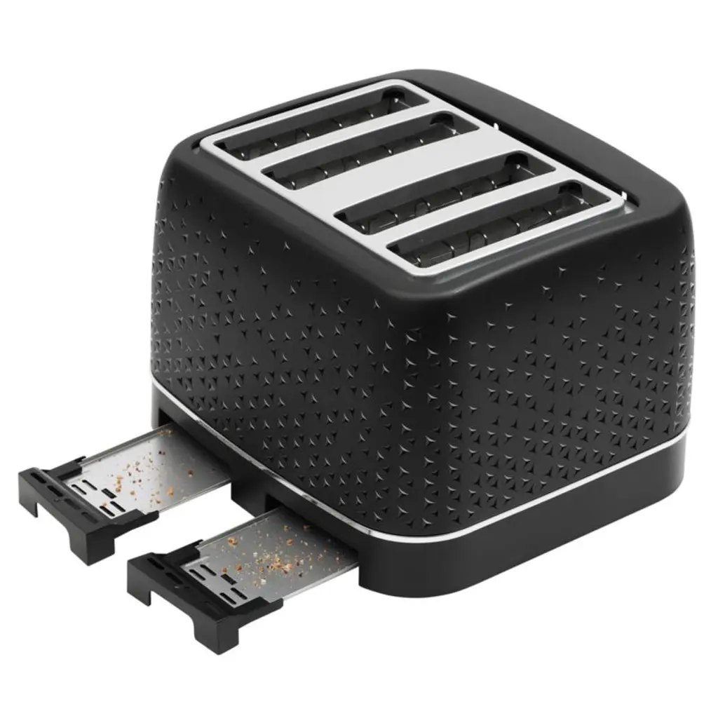 Debossed with scattered stars, this delightful toaster is a stellar addition to your kitchen. This stainless steel four-slice toaster coated in textured black starts your day with perfectly browned toast and an elegant-yet-charming design. The classic curves and gleaming accents offer a bit of retro style. Seven browning levels ensure every bagel, English muffin and slice of bread is toasted precisely to your liking. Pair with the matching Starbeck electric kettle and coffee maker for a coordinated countertop.