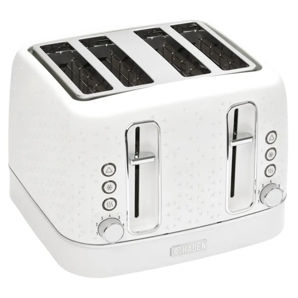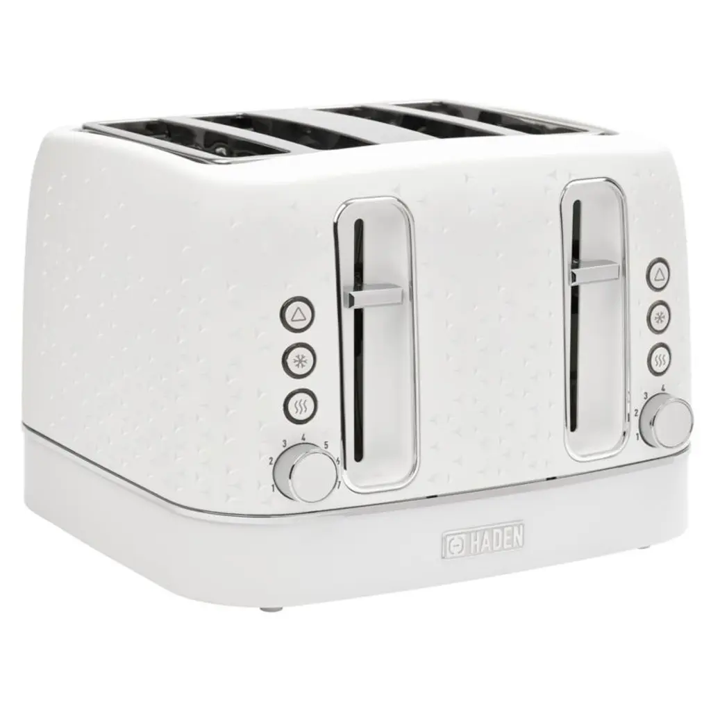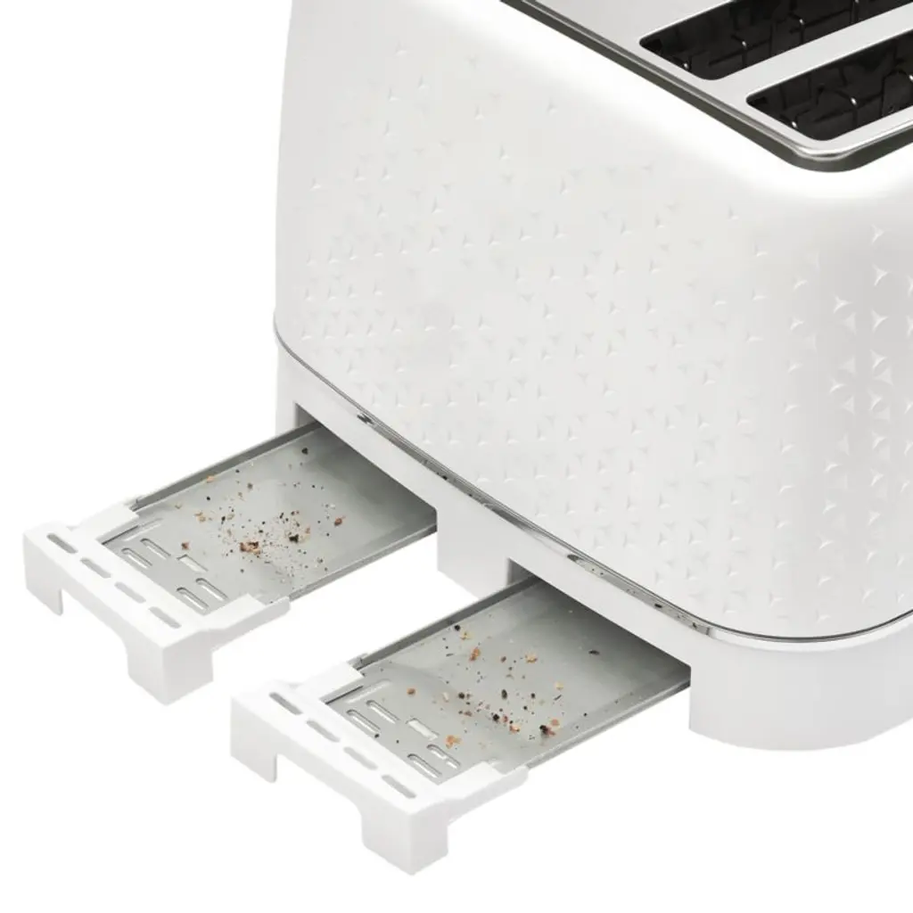 Debossed with scattered stars, this delightful toaster is a stellar addition to your kitchen. This stainless steel four-slice toaster coated in textured white starts your day with perfectly browned toast and an elegant-yet-charming design. The classic curves and gleaming accents offer a bit of retro style. Seven browning levels ensure every bagel, English muffin and slice of bread is toasted precisely to your liking. Pair with the matching Starbeck electric kettle and coffee maker for a coordinated countertop.