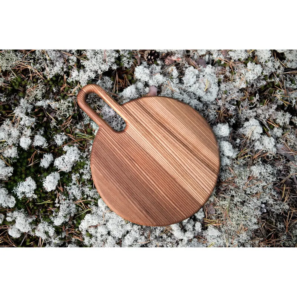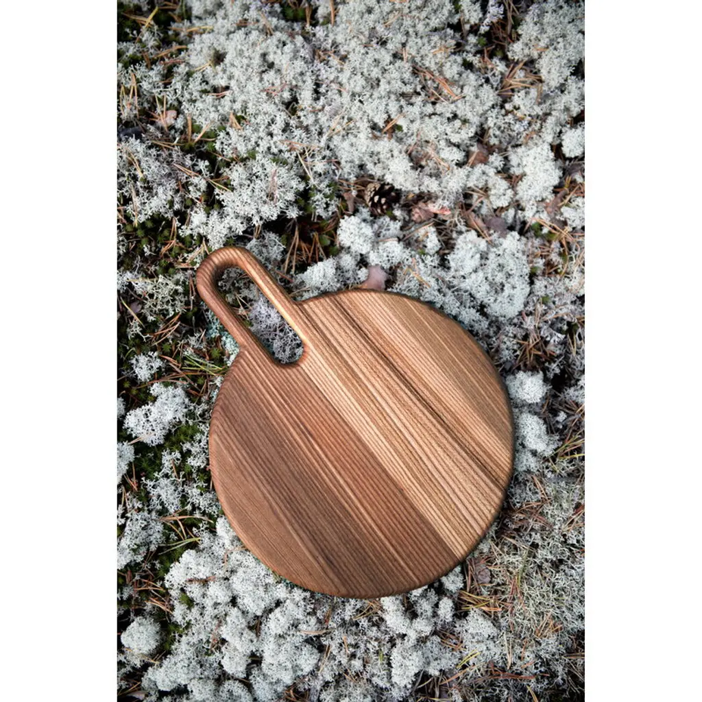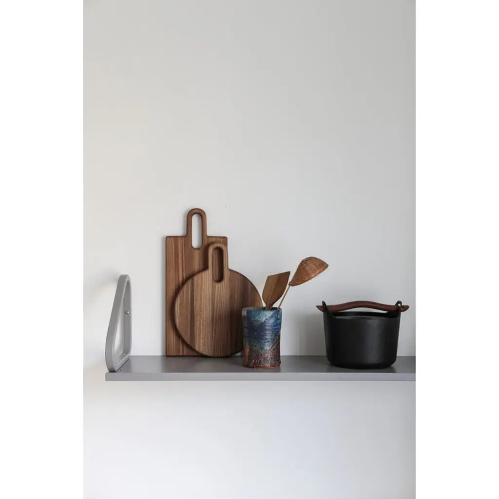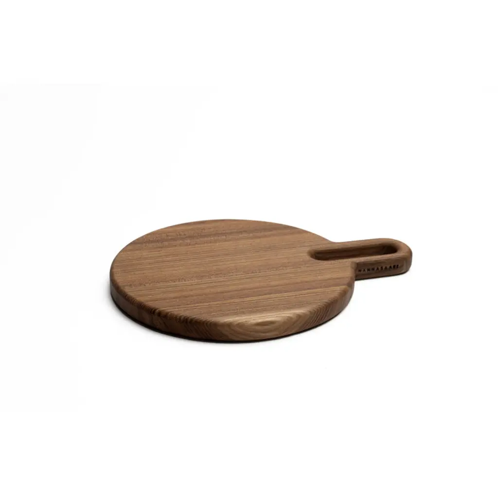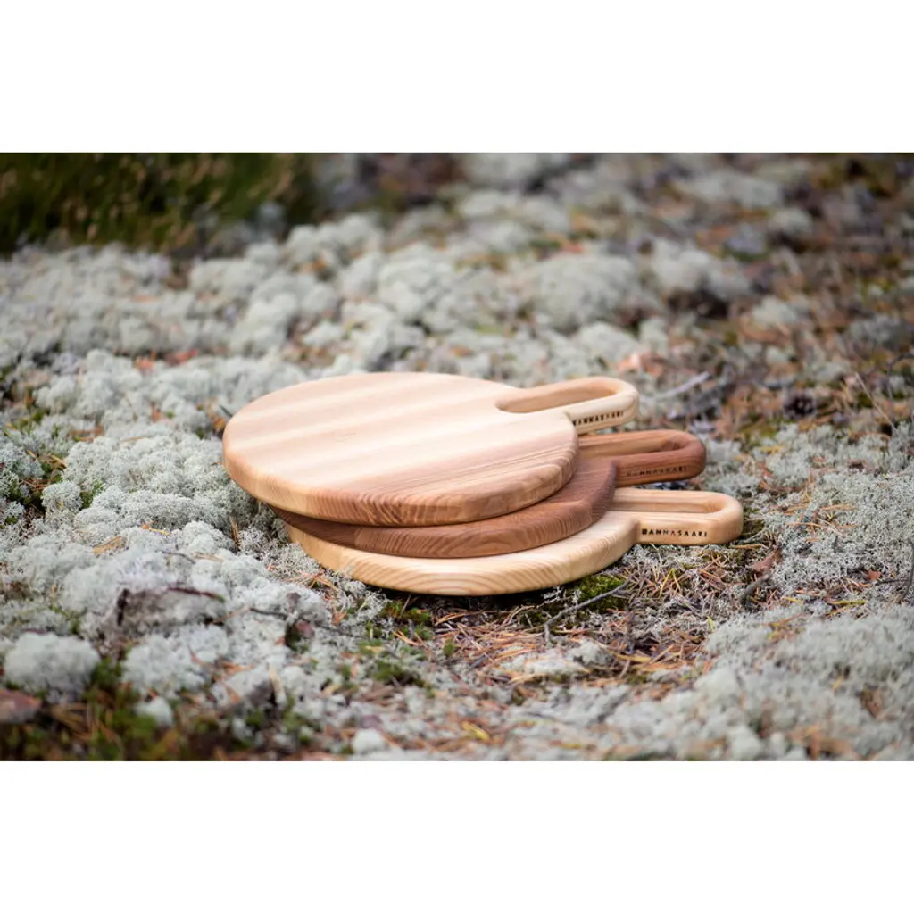 Halikko is a cutting board designed and manufactured by Hanna Saari. Made of high-quality solid wood, the cutting board reveals unique grain patterns and works like a jewel in the kitchen. The cutting board has a rounded design, functional handle and a hole for hanging. Halikko serves perfectly as a serving platter in table settings and is a long-lasting gift idea. The handmade antibacterial cutting board is finished with paraffin oil, which makes it a safe cutting surface for bread or vegetables. Each cutting board is a unique piece, allowing the wood texture and shades to vary individually.