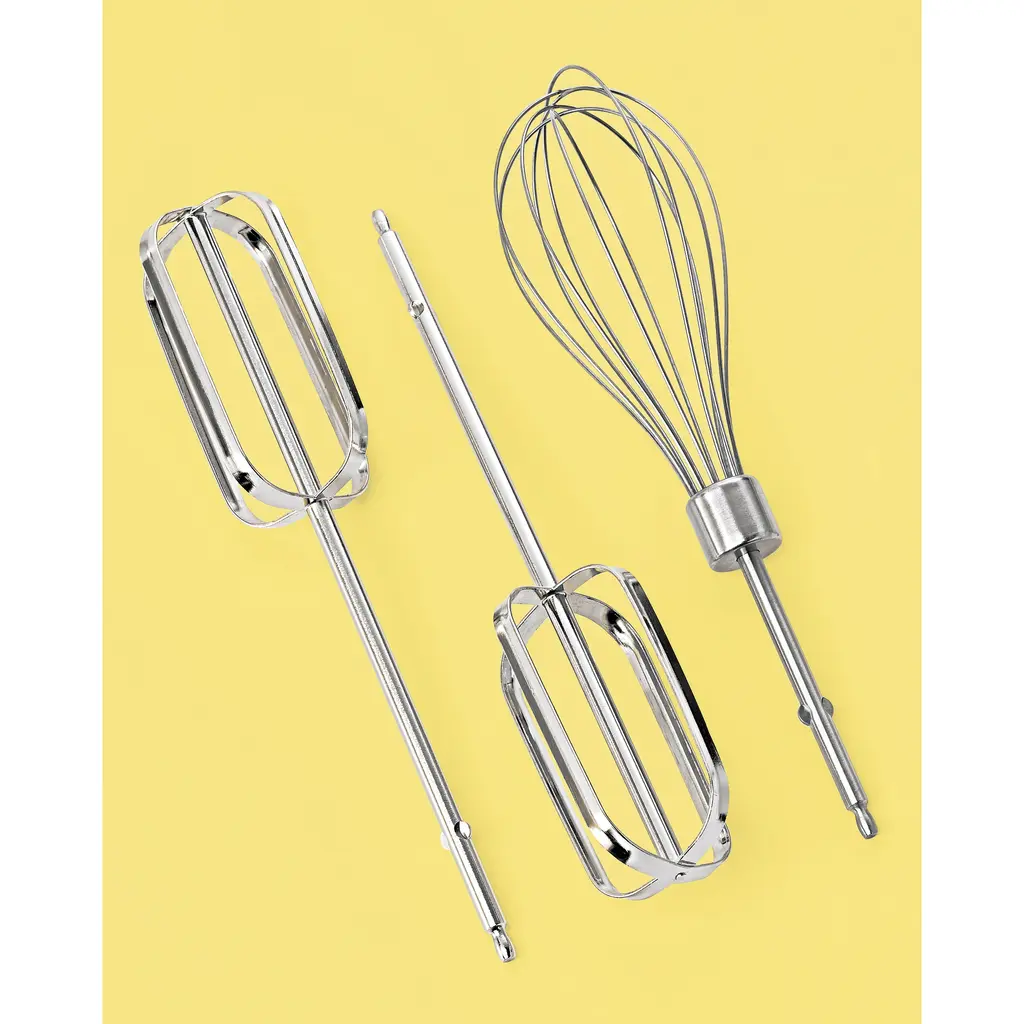 Create delicious treats with ease and style using this 6-speed pulse hand mixer. With a snap-on storage case, six attachments and six speeds, this hand mixer makes baking a piece of cake. Snap-on storage case Pulse function - pulses on the slowest speed for added control and less mess 290 watts peak power with burst button 6 attachments included - twisted wire beaters, milkshake mixer, dough hooks, and whisk Convenient eject trigger for attachments 6 speeds, pulse and burst Package contents: 6-speed hand mixer, snap-on case, twisted wire beaters, milkshake mixer, dough hook, whisk Brand: Hamilton Beach Included items: Twisted wire beaters, milkshake mixer, dough hooks, and whisk Type: Hand mixer Finish: Glossy Color options: Black Style: modern Settings: Four (4) Wattage: 290 Capacity: 12 cup Model: 62620 Dimensions: 8.86 inches high x 3.54 inches wide x 9.06 inches deep