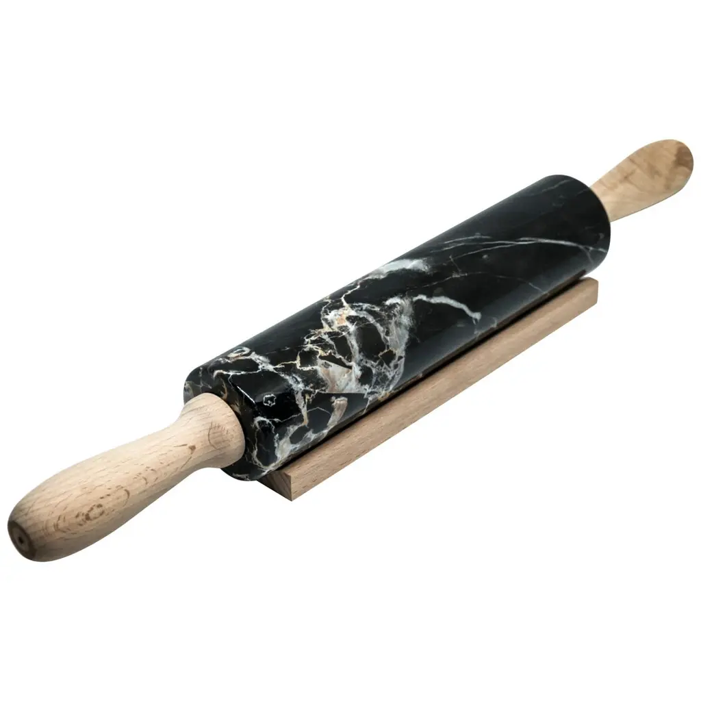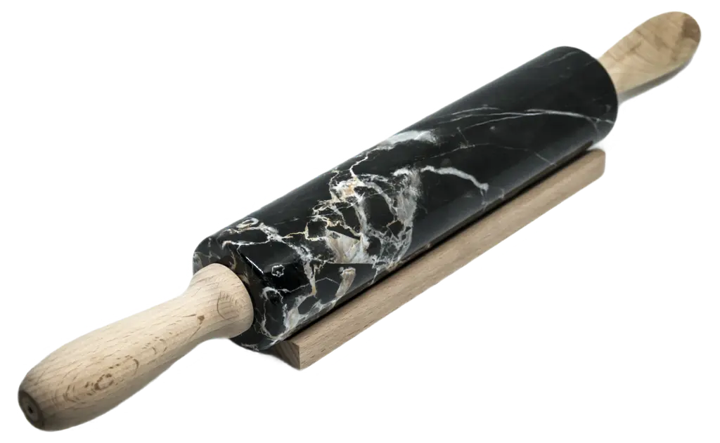 Handmade Grey Bardiglio Marble Rolling Pin With Wooden Handles