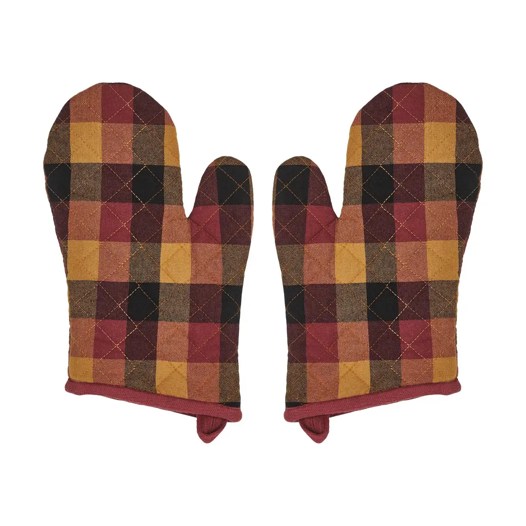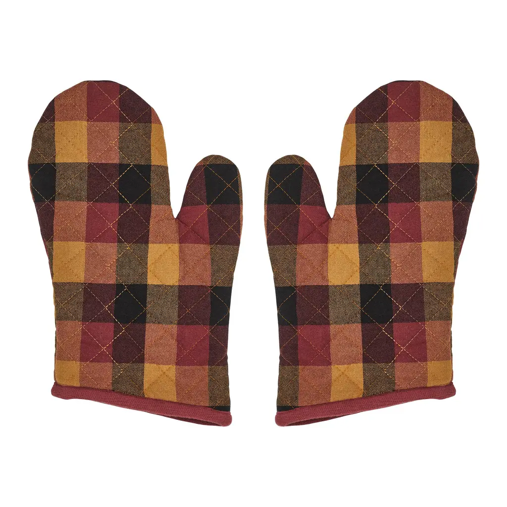 Elevate your country or primitive-style kitchen with the VHC Brands Cotton Oven Mitt Set of 2 from the Heritage Farms Collection. These 12.5x8-inch oven mitts are designed for heavy-duty use, ensuring your hands are protected when handling hot cookware. Crafted with high-quality cotton, these mitts offer a woven, textured grip that provides excellent control for both men and women during baking, cooking, or grilling. The Heritage Farms Collection's classic check design in deep burgundy adds a touch of rustic charm to your culinary space. This set of oven mitts is heat-resistant and built to withstand the rigors of cooking. Whether you're baking, cooking, or grilling, these mitts will help you do it safely and stylishly while adding a hint of classic country flair to your kitchen.