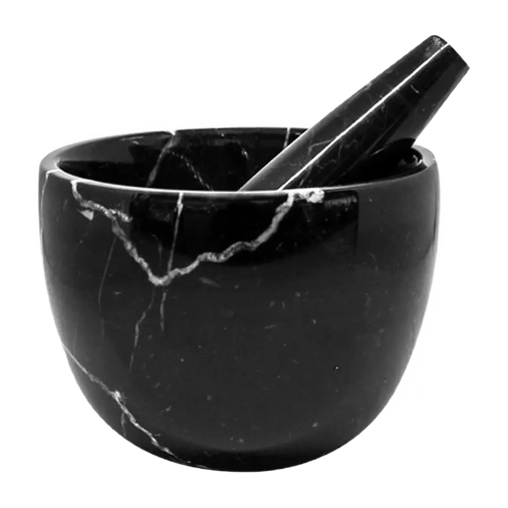 Look to the Bella White Marble Mortar Pestle Set to create flavorful pesto, pastes and powders. This set features a shallow bowl for working with herbs and spices. The inside of the mortar bowl and the end of the pestle are both unpolished, for superior grinding and crushing. Subtle, natural variations in each handmade marble piece make this set a unique kitchen accessory and a truly distinctive gift.