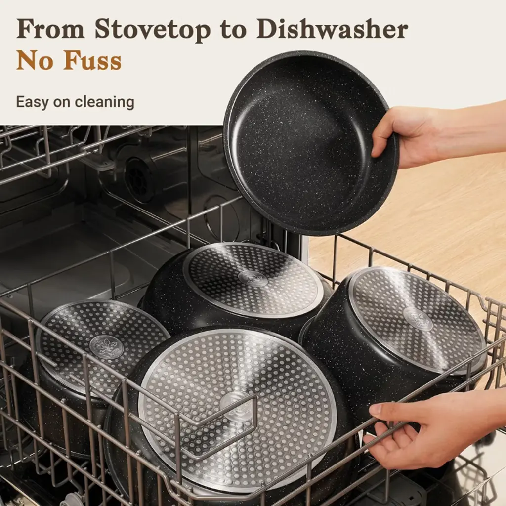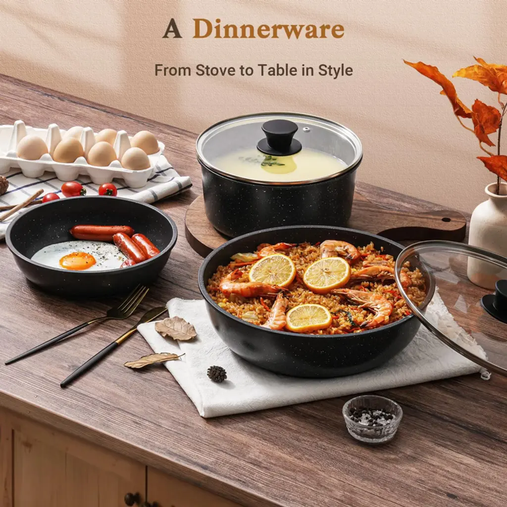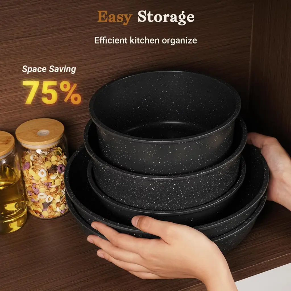 Upgrade your kitchen with this 15 - piece non - stick cookware set. It includes a variety of pans and accessories to meet all your cooking needs. The set features a space - saving design with removable handles, allowing for up to 75% space savings in cabinets, making it perfect for apartments, RVs, and campers. The non - toxic, premium nonstick coating ensures effortless food release and healthier cooking. It's also durable and scratch - resistant, built to last. This cookware set is compatible with multiple stovetops, including gas, electric, ceramic, and induction, and is oven - safe up to 480°F. Cleaning is a breeze, thanks to the nonstick coating and removable handles. You can either wipe it with a paper towel, rinse it under water, or simply put it in the dishwasher. The ergonomic handles offer a secure and comfortable grip. With this cookware set, cooking becomes more enjoyable and convenient.