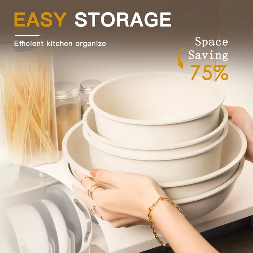 Itopfox 21-piece Ceramic Non-stick Cookware Set With Detachable Handles, Oven & Induction Safe, Stackable Pots And Pans In Cream White