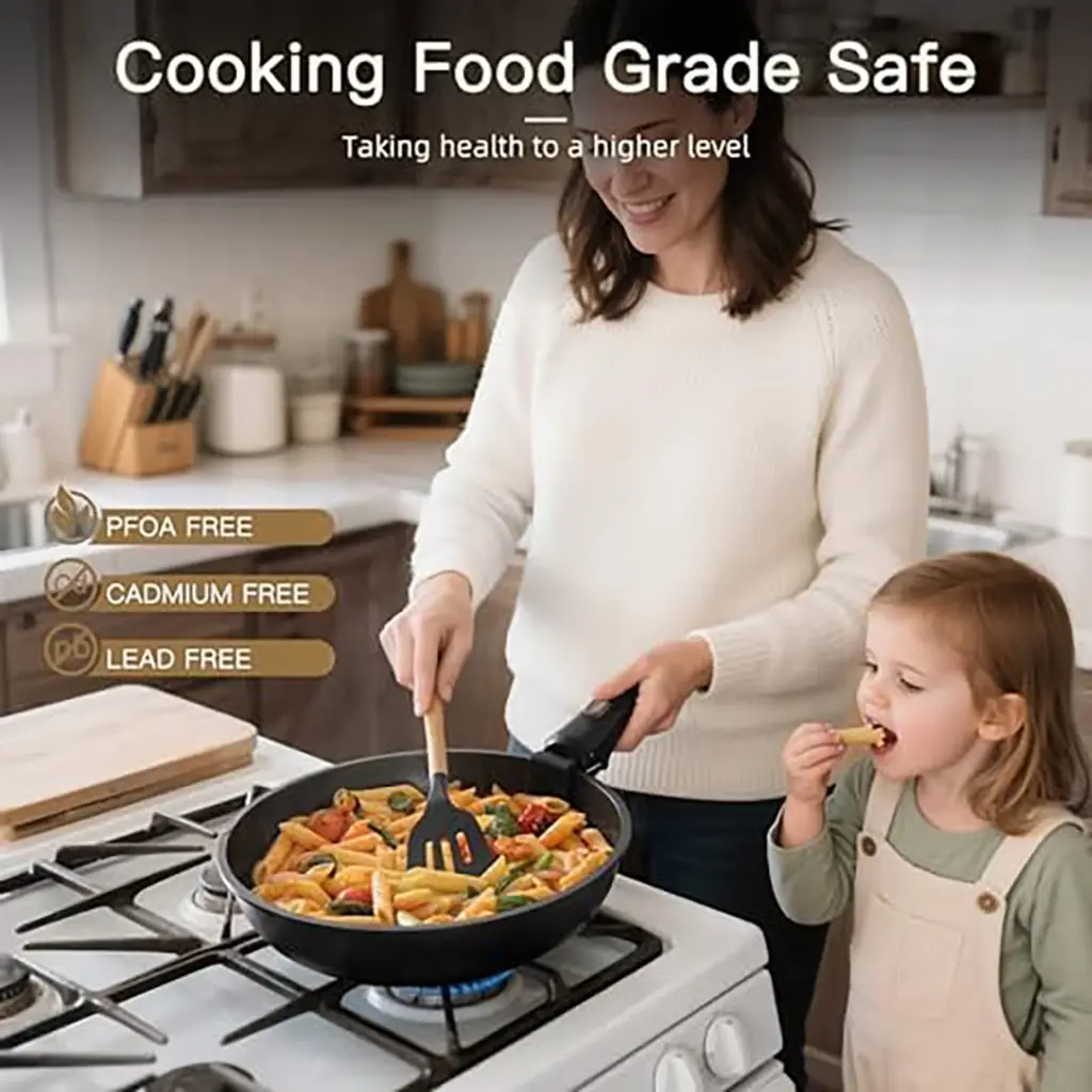 Discover this 21 - piece cookware set that's a game - changer for your kitchen! Crafted from high - quality aluminum, it features a high - performance nonstick coating, free from harmful PFOA, which ensures a healthier cooking process and is incredibly easy to clean. The set comes with a unique removable handle with a secure locking mechanism, providing a stable grip while cooking. It's suitable for various heat sources like induction, gas, and ceramic hobs, ensuring efficient and uniform heating. Whether you're cooking in your daily kitchen or an RV, this stackable and oven - safe set is a practical choice. The detachable handle not only simplifies cleaning but also saves valuable storage space. Upgrade your cooking experience with this versatile and durable cookware set.