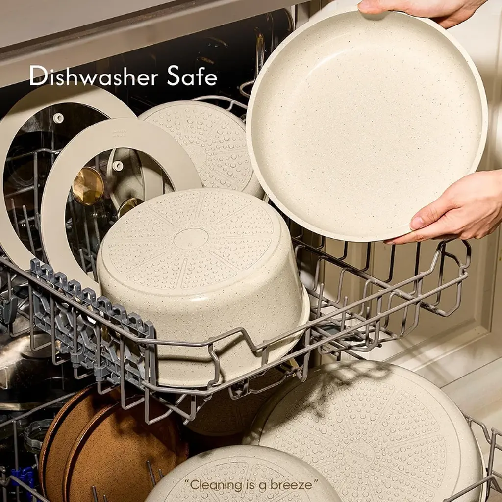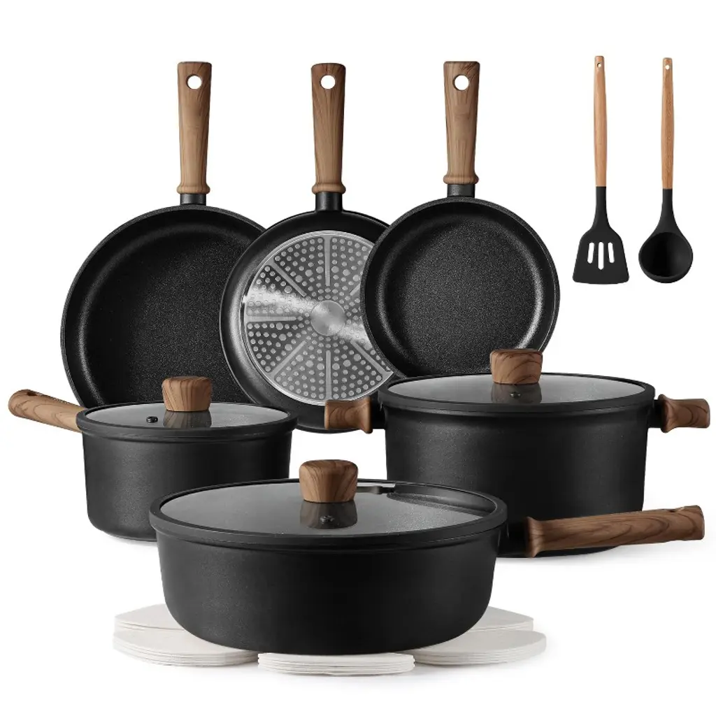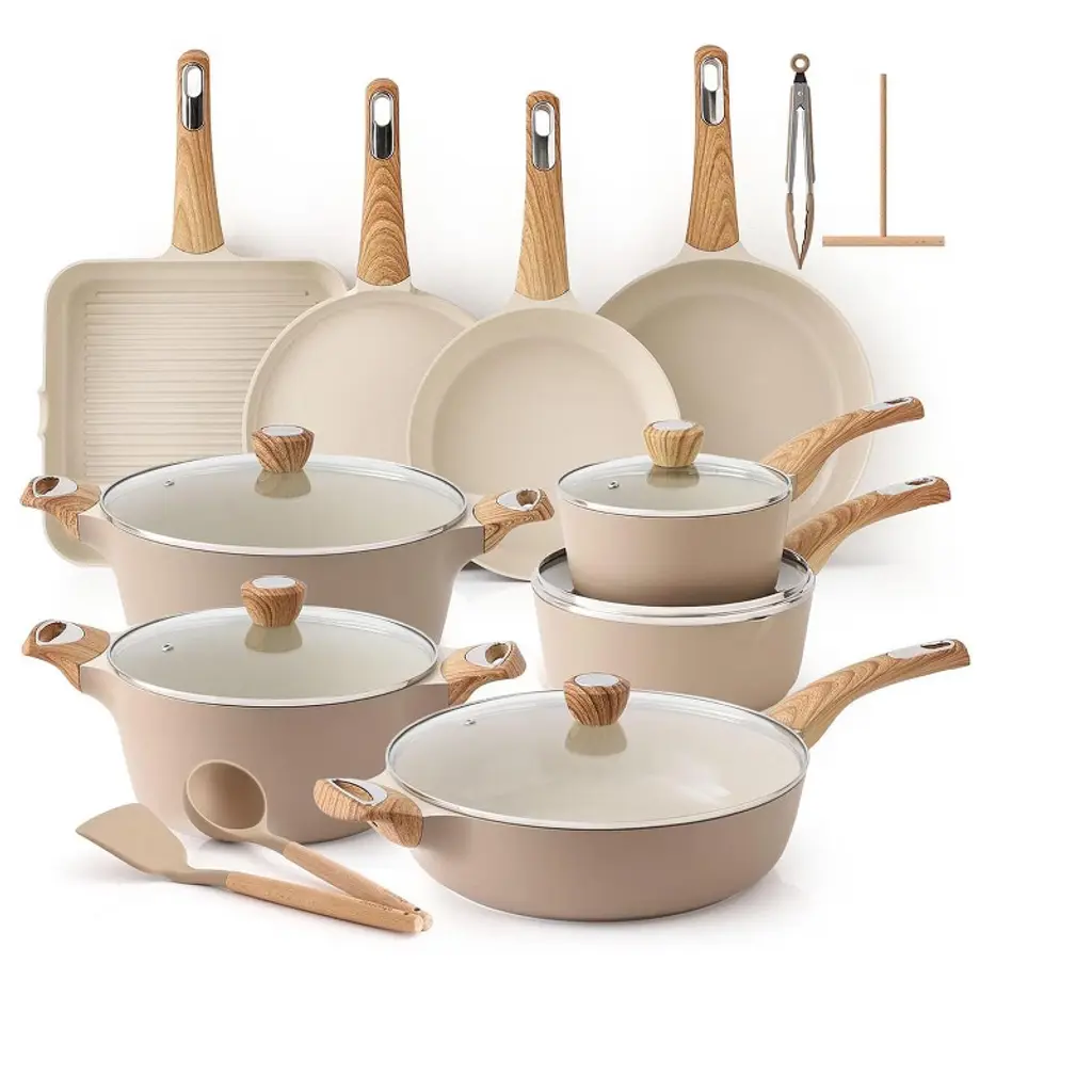 Upgrade your kitchen with this 25 - piece ceramic cookware set. Crafted from reinforced die - cast aluminum, it's built to last and resistant to wear and tear. The set is free of PFOA, PFOS, and other harmful chemicals, ensuring healthy cooking. It features an ultra - nonstick coating, making cooking and cleaning a cinch. With even and rapid heat delivery, there are no hot spots, cooking food evenly. It's oven - safe and induction - compatible, suitable for a wide range of cooking methods. Whether you're cooking in an RV or a regular kitchen, this set provides the convenience and performance you need for an enjoyable cooking experience.