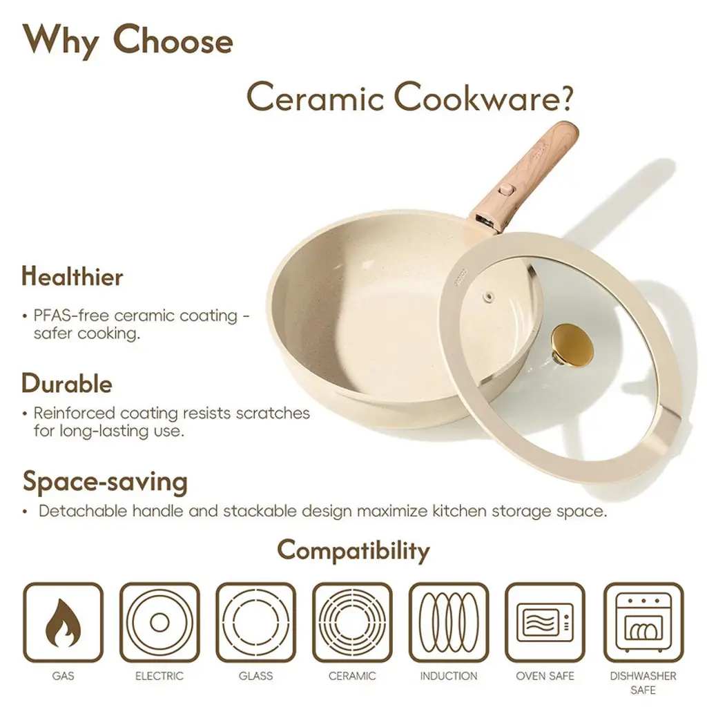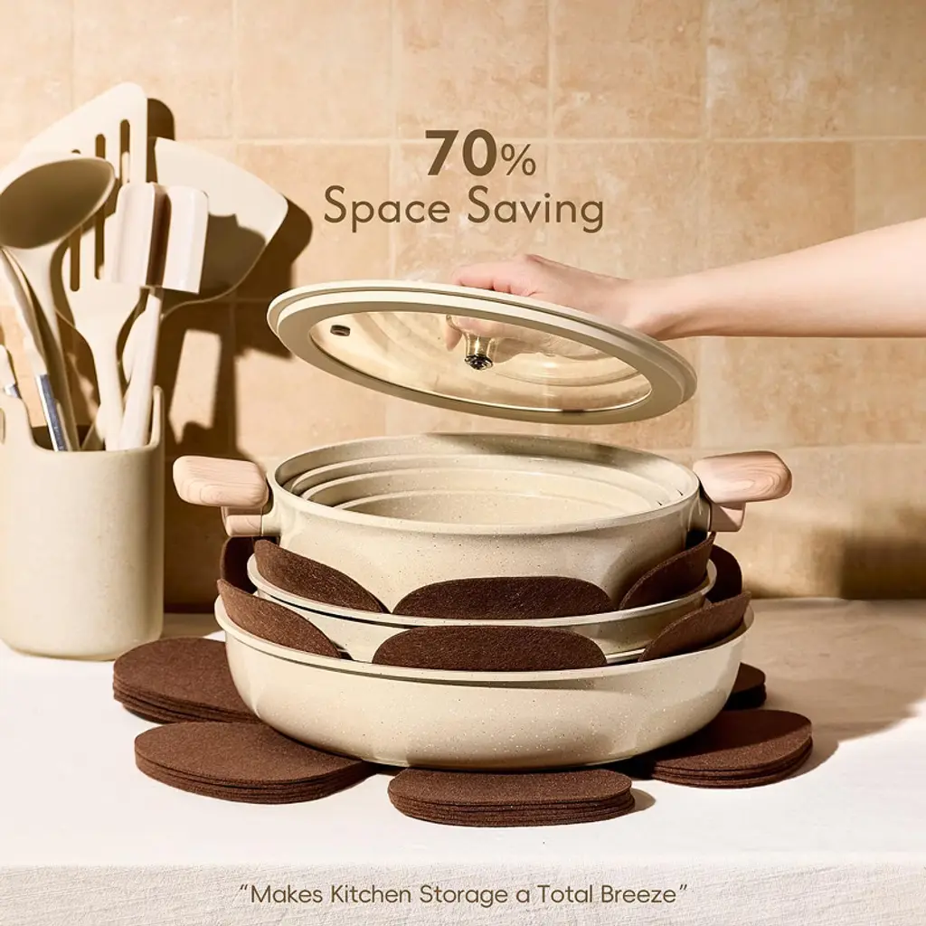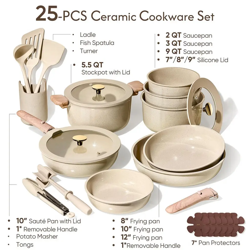 Itopfox 25-piece Ceramic Cookware Set With Non-stick Coating, Oven & Induction Safe, Removable Handles, Pfas & Pfoa Free