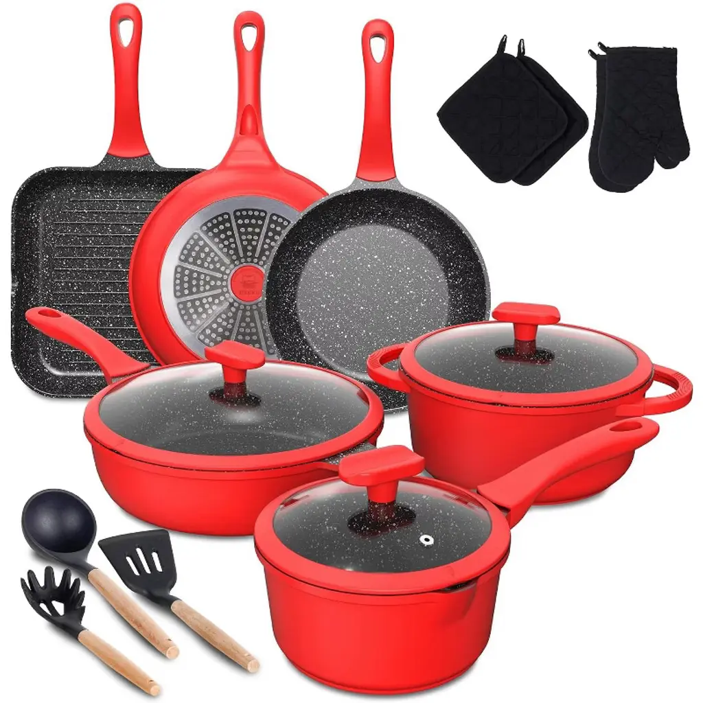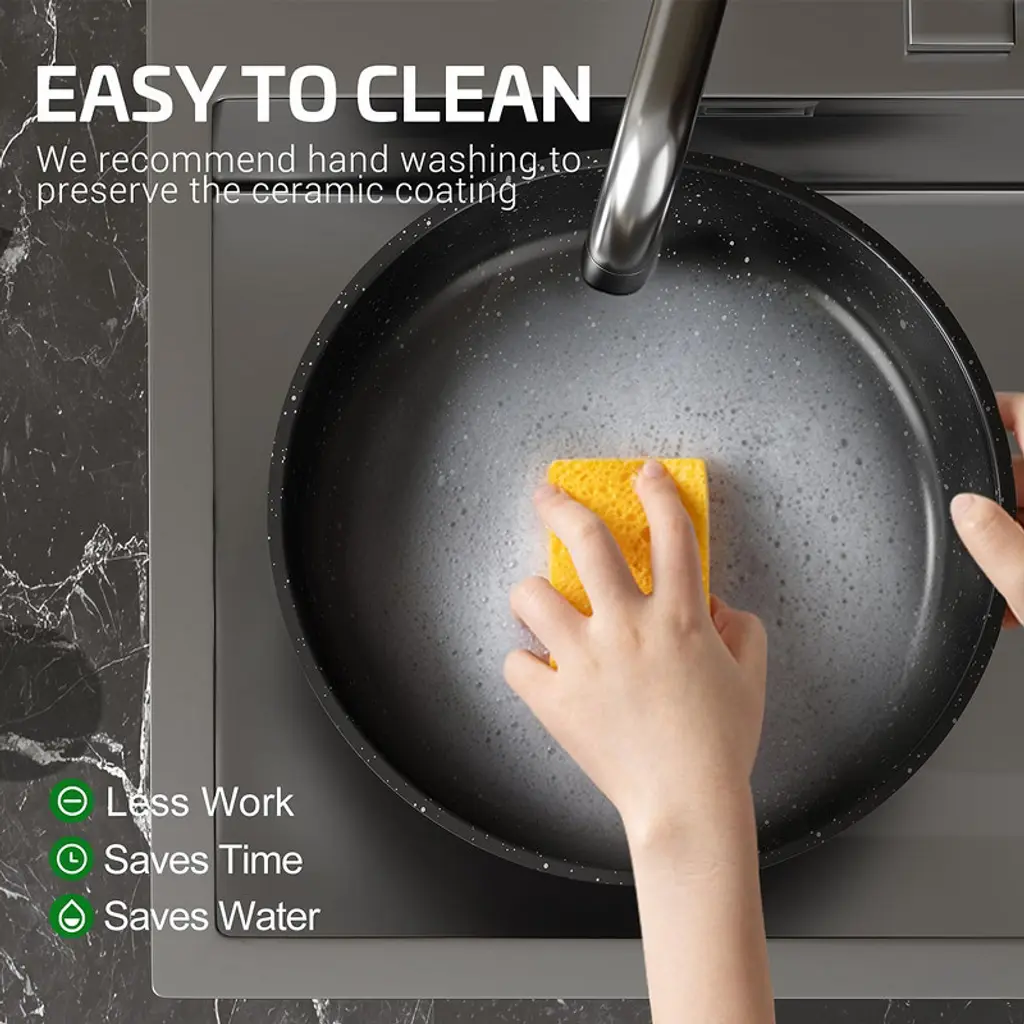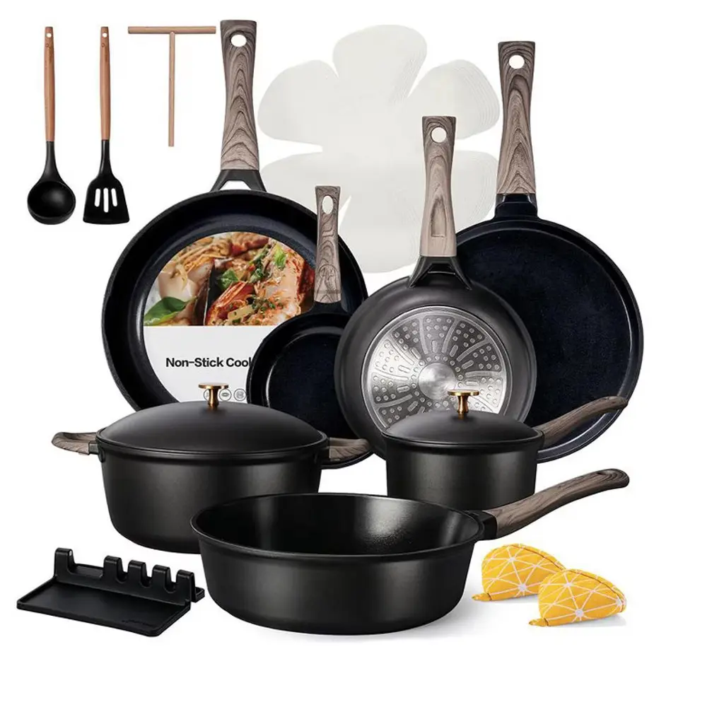 Discover this 26 - piece pots and pans set, a must - have for modern kitchens! The cookware is coated with a double - sided ceramic non - stick layer, free from Teflon, PFAS, and heavy metals like lead and cadmium, ensuring a healthy and eco - friendly cooking experience. It's compatible with all stovetops, including induction, gas, electric, glass - top, and ceramic stoves, and is oven - safe up to 550°F. The set comes with silicone lids (safe to 350°F) and sealing lids that can handle a wide range of temperatures from - 100°F to 170°F. Its removable design allows it to save 75% of cabinet space, making it perfect for small kitchens, RVs, or camping. Cleaning is a breeze due to the non - stick coating. You can use it as tableware, bakeware, or even for fridge storage. Additionally, an adjustable silicone trivet is included to protect your countertops. Upgrade your cooking experience with this versatile and practical cookware set.