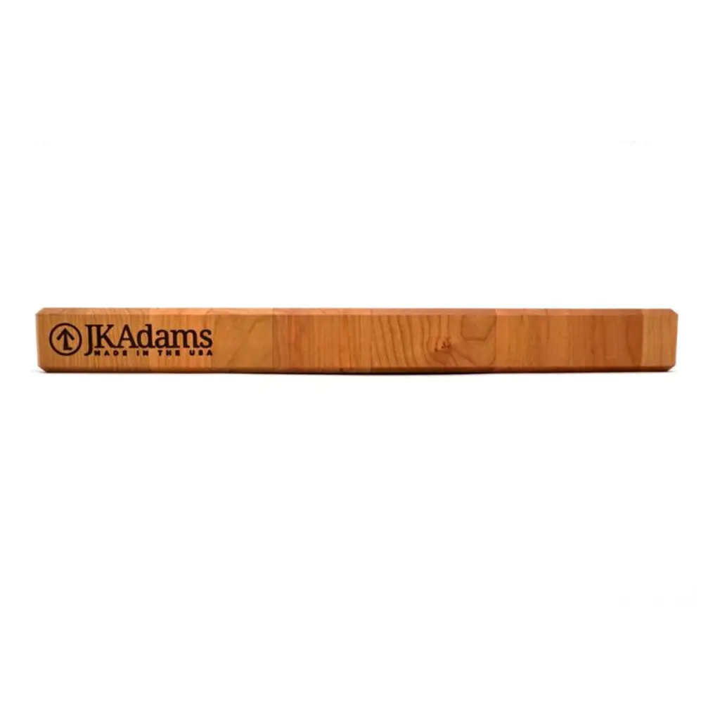 This display-worthy cutting board showcases the beauty of end-grain cherry wood. Made up of sections cut from the inner rings of a tree, the end-grain board boasts a mosaic of warm wood tones. The construction method is prized by professional chefs as it helps maintain the sharpness of knives. Standing up to everyday slicing and chopping, the board doubles as a serving piece for cheese, charcuterie or crudites.Offering fine New England craftsmanship, Vermont-based J.K. Adams has been creating housewares since 1945.