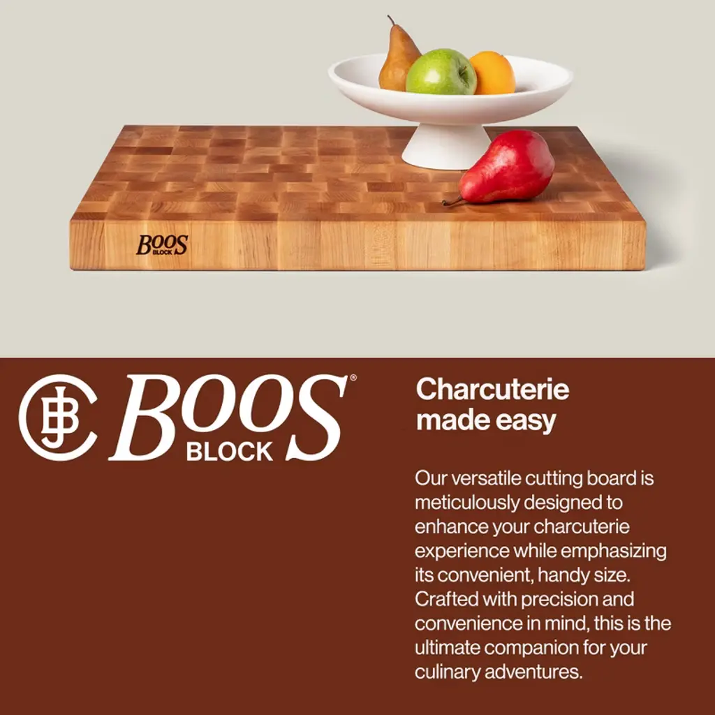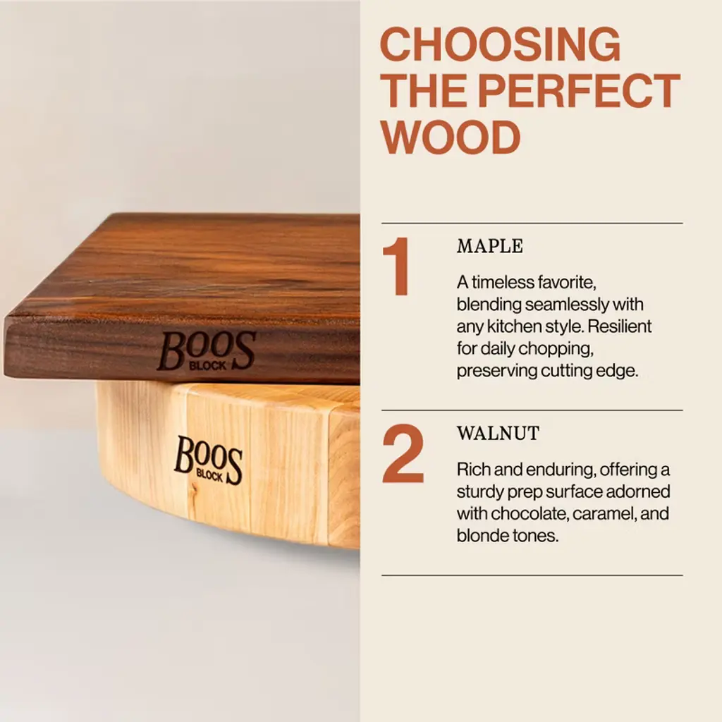 Made in our home and crafted for yours, the John Boos CCB series reversible wood chopping block is a kitchen essential designed for efficient food preparation. Crafted from high-quality wood with an end-grain design, this chopping board offers ample space and durability for chopping meats, greens, and more. Its flat side is great for cutting, carving, and chopping bread, veggies, and other ingredients, and the recessed finger grips ensure easy mobility and handling. This expertly crafted tool features an oil finish that enhances the natural beauty of the wood board while offering added protection against moisture and daily wear. Maintain the bevel, sand minor scratches, and follow simple maintenance solutions found in our kitchen cutting board care and usage sheet to ensure longevity and optimal performance. For additional care, we recommend using our Boos Block Mystery Oil and Board Cream (sold separately) to revitalize and protect the wood fibers and wooden surface. Since 1887, John Boos & Co. products have been the choice for renowned chefs and restaurateurs worldwide. Through a legacy of workmanship, innovation, and devotion stemming from our founder to employees past and present, John Boos & Co. aspires to be recognized worldwide as a touchstone at the heart of cooking and the enjoyment of food.