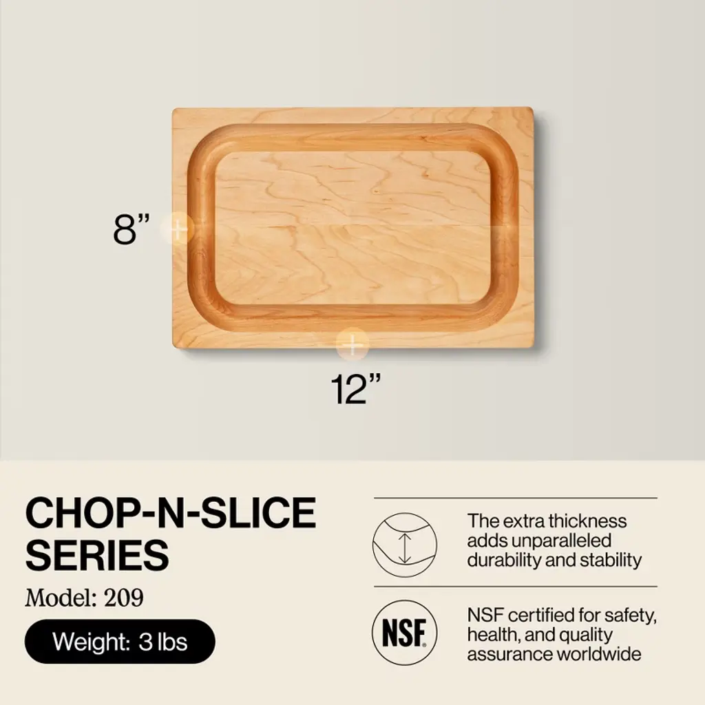 John Boos Boos Block Chop-n-slice Series Reversible Wood Cutting Board With Juice Groove, 1-inch Thickness, 12" X 8" X 1", Maple