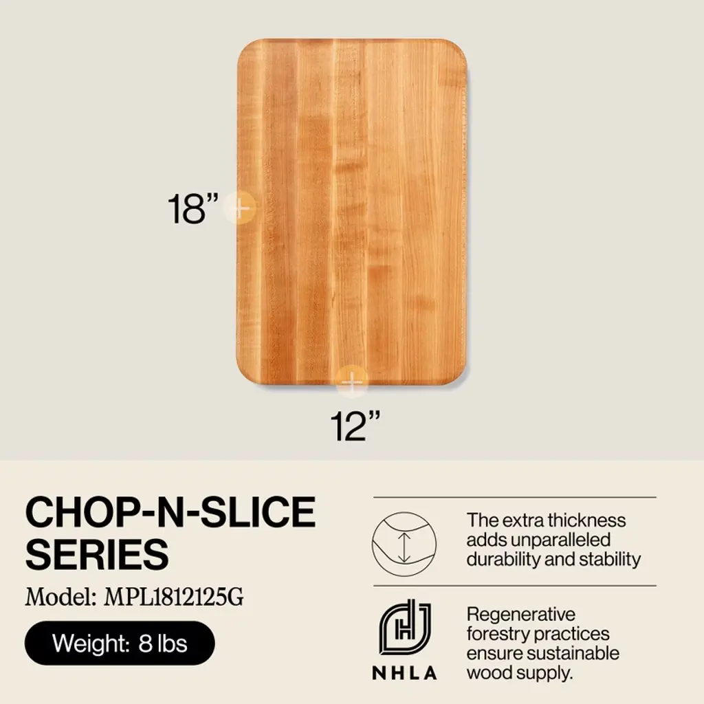 The John Boos Maple Wood Edge Grain Reversible Cutting Board is an indispensable addition to your kitchen utensils. Measuring 18 x 12 x 1.25 inches, it's an essential tool for meal prep and more. The wood edge grain construction not only enhances its utility but also adds a touch of home decor to your kitchen. It doubles as a fantastic charcuterie board for creating enticing cheese platters. Designed to be your kitchen's ideal meal prep companion, this cutting board offers a sturdy and reliable surface for various tasks, from breaking down meat to dicing vegetables and crafting sushi. Its spacious surface accommodates all kinds of food prep, whether you're using kitchen gadgets to chop, slice, or dice fruits and veggies, or preparing a BBQ feast The reversible feature provides two cutting surfaces, making it an excellent choice for those who love cooking and entertaining. It effectively doubles your workspace, seamlessly transitioning from meal prep to a serving tray – a valuable addition to your kitchen tools. Beyond its practicality, the John Boos cutting board brings a stylish touch to your kitchen. The beautiful maple wood lends a warm, inviting ambiance, even serving as kitchen decor that adds a dash of style to your home essentials. Whether you're an experienced chef or a novice cook, this cutting board is a kitchen essential. Its sturdy design and versatility suit every culinary task. Integrate this cutting board into your kitchen today and experience the joy of having the right tool for every culinary job. Through a legacy of workmanship, innovation, and dedication from our founder to our employees past and present, John Boos & Co. aspires to be recognized worldwide as a cornerstone in the heart of cooking and the enjoyment of food.